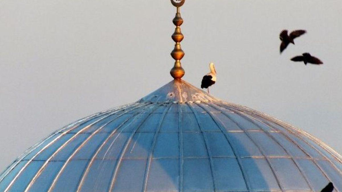 Hayrabolu’da Vakıf Cami kubbesine konuşlanan leylekler şimdilerde yıpranan yuvalarını taşıdığı ot ve paçavralarla yeniden onararak yavruları için uygun ortam hazırlarken, sıcak geçireceği yaz mevsimine hazırlıyorlar.
