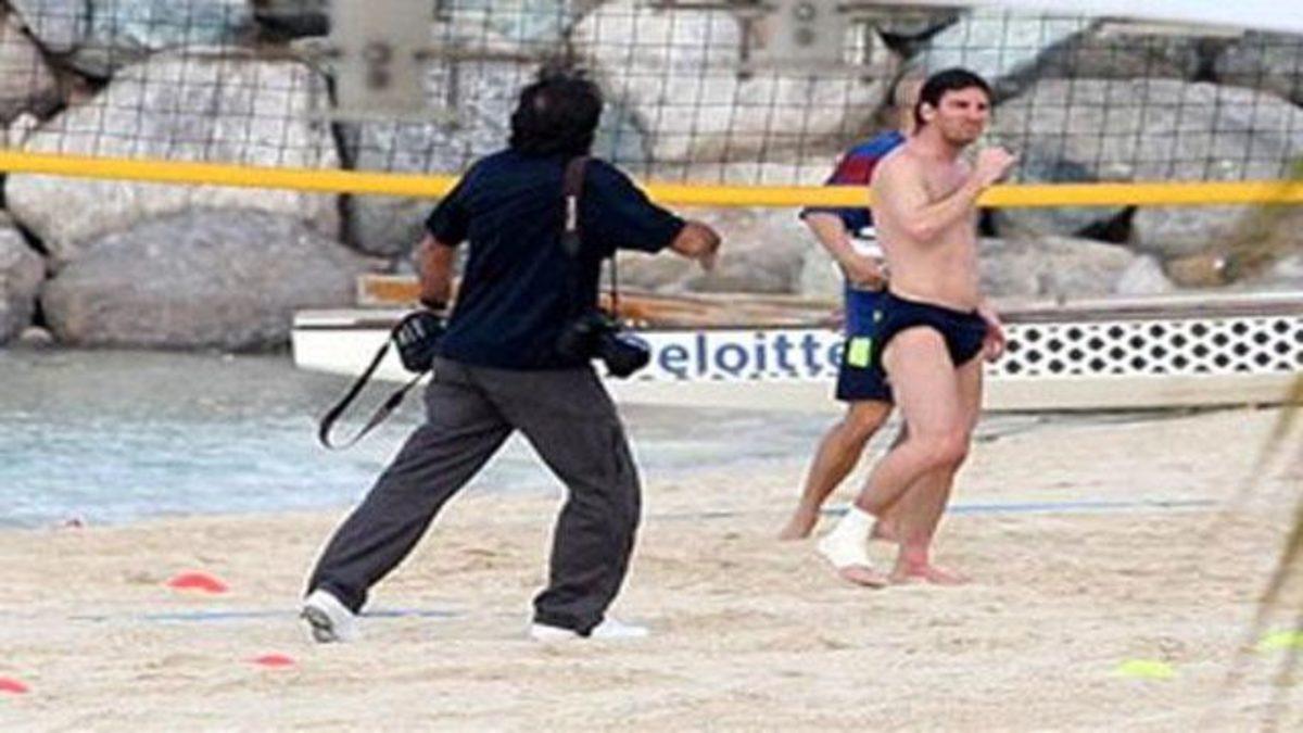 FIFA Kulüpler Dünya Kupası maçları için Abu Dhabi'de bulunan Barcelona'da sakatlığı bulunan Lionel Messi plaja indi.