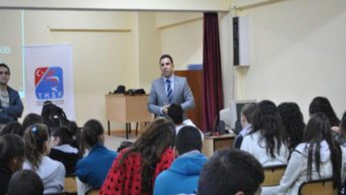 AHAS Başkanı Güner Akkaya, öğrencilere yamaç paraşütü ile ilgili bilgiler verdi.