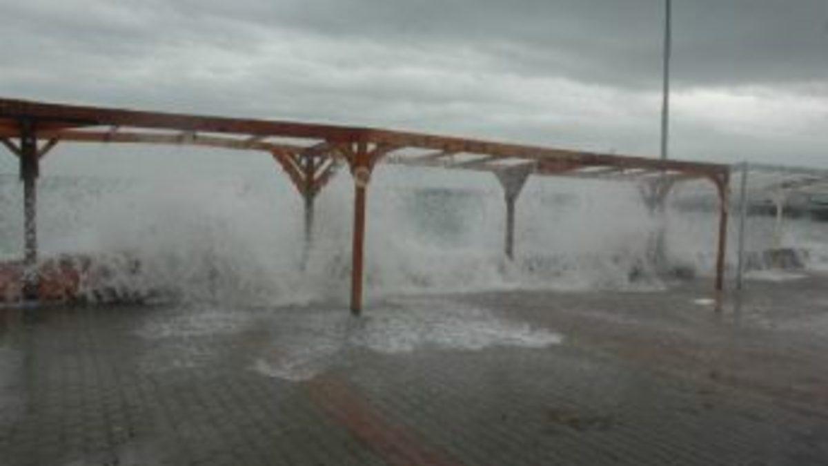 Tekirdağ sahilinde boyu 5 metreyi bulan dalgalar sahildeki çay bahçelerine de zarar verdi. Sahilde gezintiye çıkan vatandaşlar dalgaların azizliğine uğradı.