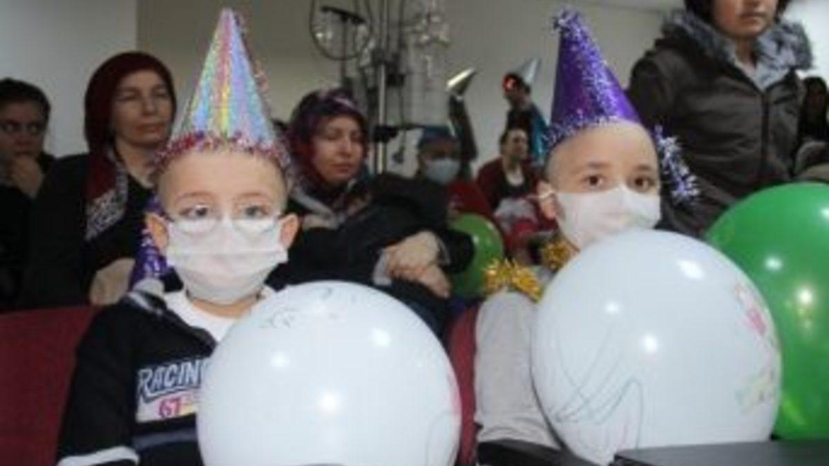 Samsun Ondokuz Mayıs Üniversitesi (OMÜ) Tıp Fakültesi Çocuk Hastanesi’nde yatmakta olan 40 lösemili çocuk, düzenlenen yılbaşı partisinde doyasıya eğlendi.OMÜ Tıp Fakültesi Çocuk Hastanesi Hematoloji ve Onkoloji Bölümü'nde yatan ve ayaktan tedavi gören lösemi hastaları için yılbaşı öncesi eğlence düzenlendi. Konferans salonunda düzenlenen etkinliğe OMÜ Tıp Fakültesi Çocuk Hastanesi Hematoloji ve Onkoloji Bölümü Anabilim Dalı Başkanı Davut Albayrak, Veteriner Fakültesi Öğretim Üyesi Dr. Gökhan İnat, çok sayıda lösemi hastası ve aileleri katılırken, üniversite öğrencileri de eğlenceye eşlik etti.Samsun Lösemili ve Kan Hastalıklı Çocuklar Derneği’nin (LÖSAM) katkılarıyla, Veteriner Fakültesi Öğretim Üyesi Dr. Gökhan İnat ve birçok kuruluşun destek verdiği yeni yıl eğlencesinde ilk olarak, LÖSAM Başkanı ve Hematoloji-Onkoloji Öğretim Üyesi Prof. Dr. Davut Albayrak, lösemili çocuklar ile birlikte pasta kesti. Daha sonra lösemi hastası çocuklar yanından ayıramadıkları serumları ile Kayu ve palyaço eşliğinde gönüllerince eğlendiler. Samsun Güzel Sanatlar Lisesi öğrencileri tarafından çalınan müziklerle doyasıya eğlenen lösemili çocuklara aileleri de eşlik etti.Yılbaşı öncesi lösemili çocuklar için bir eğlence düzenlediklerini söyleyen Öğretim Üyesi Dr. Gökhan İnat, “Çocuk hastanemizdeki bütün servislerimizden çocuklarımız geldi. Bu etkinliğimizde bizlerle beraber oldular. Hem biz hem LÖSAM hem üniversite hem de hematoloji bölümü olarak bu arkadaşlarımızın hep yanlarında olmak istiyoruz. Bugün üniversitemizin bütün bölümlerinden arkadaşlarımız geldi, hep beraber bu eğlenceyi yapmaya çalıştık. Lösemili çocuklarımızın 1 saat yanlarında olmak bizim için çok büyük bir gurur ve sevinç kaynağı. Biz bu etkinliklerimizi yılbaşından 20 gün öncesinden planlıyoruz. Önce küçük bir hediye kampanyamız oluyor. Çocuklarımız isteklerini küçük bir kağıda yazıp bize iletiyorlar. Biz de bunları Samsun’da, Ankara’da elimizin uzandığı her yerde arkadaşlarımıza, dostlarımıza gönderiyoruz ve hayallerini gerçekleştirmeye çalışıyoruz. Hediyelerini tamamlayıp serviste dağıtımını yapıyoruz. Daha sonra eğlencemize davam diyoruz” dedi.