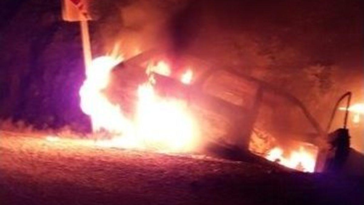 Muğla-Marmaris’te hareket halindeyken alev alan LPG’li otomobil kaza yaptıktan sonra yanarak küle döndü. LPG tüpünün patlaması sonucu korkup kaçan sürücü hakkında işlem başlatıldı.Olay, dün gece ilçeye 16 kilometre mesafedeki Değirmenyanı mahallesinde meydana geldi. F.K’nin kullandığı 64 KL 922 plakalı LPG’li otomobil hareket halindeyken alev aldı. Paniğe kapılan sürücü F.K, aracın kontrolünü kaybederek yol kenarındaki kayalara çarptı. Kazanın etkisiyle LPG tankı büyük bir gürültü ile patladı. Alevler otomobilin her yanının sardı. Patlamanın etkisiyle sürücü olay yerinden kaçtı. Aracın yandığını gören çevre sakinleri itfaiye ve jandarmaya haber verdi. Su ve köpükle alevlere müdahale eden itfaiye, yangını söndürdü. Olay sonrası kaçan sürücü F.K daha sonra karakola kendiliğinden giderek ifade verdi. Kaza ile ilgili soruşturma başlatıldı.