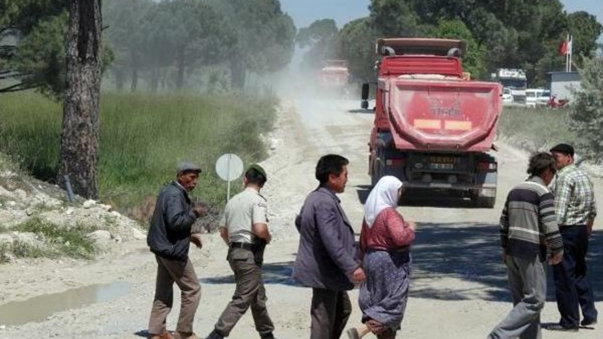 Madenlerden aldıkları yükü Güllük Limanı'na götüren kamyonların hayatlarını kabusa döndürdüğünü belirten köylülerden 62 yaşındaki Nazife Sakarya, "Toz içinde kalıyoruz. Ne kapı pencere açabiliyoruz ne de doğru dürüst bir şey yiyip, içebiliyoruz. Evlerimiz tozdan, topraktan kurtulsun. Biz bugüne kadar buna katlandık ancak çocuklarımızın da aynı sıkıntıyı yaşamalarını istemiyoruz. Sağlığımız bozuldu. Çocuklarımız, kamyonların neden olduğu tozdan sürekli öksürüyor. Birilerinin bu duruma artık 'dur' demesini bekliyoruz" dedi.