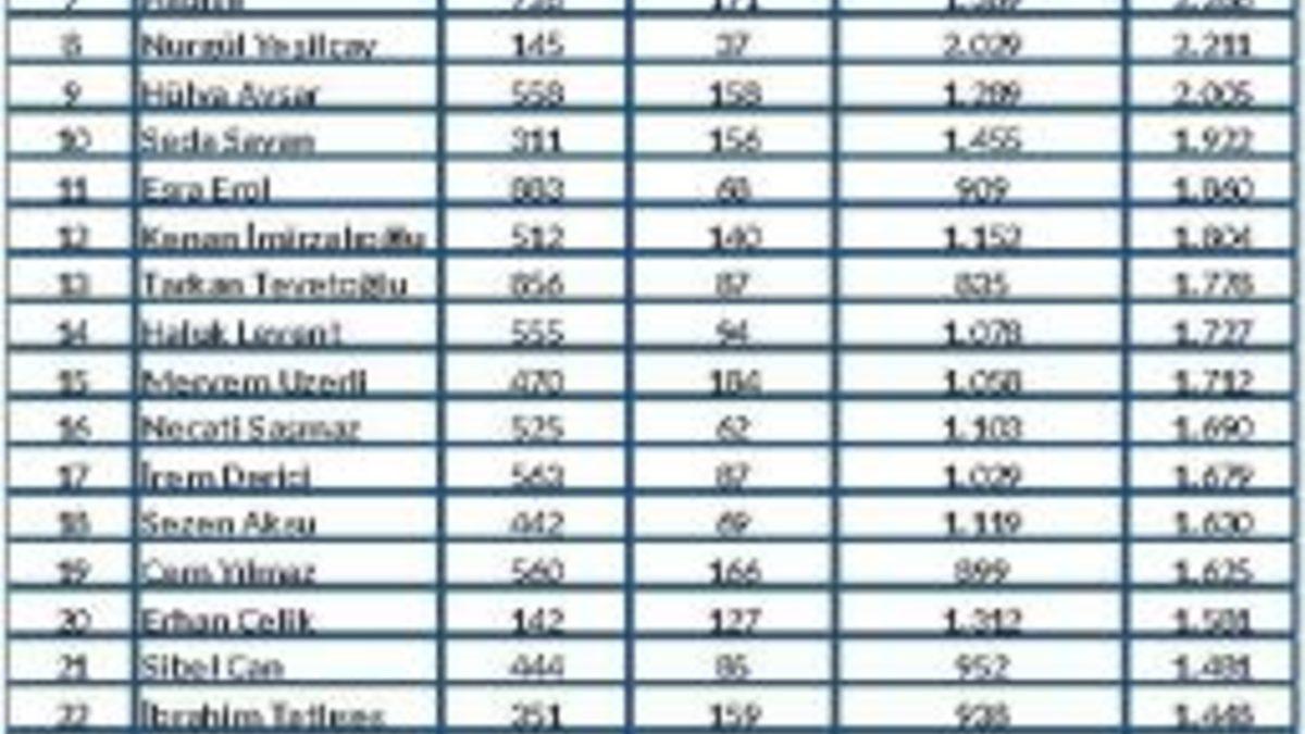 Magazin dünyasının Ekim ayı raporunda en çok konuşulan isimler Acun Ilıcalı ve Demet Akalın oldu.Medya Takip Merkezi (MTM) magazin dünyasının Ekim ayı raporunu açıkladı. Magazin Gazetecileri Derneği için hazırlanan rapora göre en çok konuşulan isimler Acun Ilıcalı ve Demet Akalın olurken, camiada yaşanan çeşitli polemikler ise aya damgasını vurdu.MTM’nin medya raporuna göre Acun Ilıcalı, Ekim ayında adını listenin başına yazdırmayı başardı. Yaptığı TV programları ile gündemi belirleyen Ilıcalı, medyada toplam 4 bin 105 habere konu edilerek zirvedeki isim oldu. Magazin camiasının dilinden düşmeyen Demet Akalın ise 2 bin 801 haberle ikinci sıraya yerleşti.Gülben Ergen ile Erhan Çelik polemiğinde yeni boyutMagazin dünyası son bir aydır Gülben Ergen ve bir sene önce ayrıldığı eşi Erhan Çelik ile arasında yaşananları ve Ergen’in evli işadamı Tolga Duğles’le yaşadığı yasak aşk iddialarını konuşuyor.Ergen, evinin korumalı otoparkında aracının bıçakla çizilmesi üzerine Erhan Çelik hakkında suç duyurusunda bulunmuş ve eski çift soluğu mahkemede almıştı. Ergen yaşadığı olumsuz olaylar sonrasında yer alacağı bazı projelerden de çıkarıldı. Yankıları hala devam eden olaylar zinciri ile Gülben Ergen toplam 2 bin 772 haberde yer alırken, Erhan Çelik bin 581 haberle konuşuldu.O Ses Türkiye’de Yıldız Tilbe rüzgarıBu yıl O Ses Türkiye jürisine dahil olan Yıldız Tilbe, hem şarkıları hem de programdaki davranışları ile ilgileri üzerine çekmeye devam ediyor. Tilbe, Gökhan Özoğuz ile tartışma yaşadığı iddialarına Gökhan’a karşı sergilediği samimi davranışları ile son noktayı koydu. Programda olmaktan mutluluk duyduğunu her defasında dile getiren Tilbe, yarışmada kendisine prenses gibi davranıldığını söyledi. Yıldız Tilbe, bu başlıklar ile toplam 2 bin 322 haber ile listenin 5. sırasına yerleşti.Nurgül Yeşilçay’dan detoks hamlesiSon zamanlarda sosyal medya paylaşımları ile gündeme gelen ünlü oyuncu Nurgül Yeşilçay, Ekim ayında adından oldukça söz ettirdi. 4 bin TL ödeyerek detoks kampına giden Nurgül Yeşilçay, kilo vermek için gittiğini fakat tam tersine kilo aldığını söyleyerek ’açım aç’ diye isyan etmişti. Paylaşımlarının yanında, ’Yedullah’ın Güzel Cini’ adlı yeni filmde Dilaram adlı dilsiz bir karakteri canlandıracak olan Yeşilçay, filmdeki rolü, alacağı para ve İran’da film boyunca konaklayacağı mekan ile de medyada yer aldı. Ünlü oyuncu bu haberlerle birlikte toplamda 2 bin 211 haberin konusu oldu.Seda Sayan ’kayıp anneyi’ arıyorSeda Sayan ve Uğur Arslan’ın sunumuyla ekranlara gelen Seda ve Uğur’la Artık Susma programı yaşanılan ilginç olaylarla gündemden düşmüyor. Programda ünlü Yeşilçam yıldızı Hale Soygazi’nin çocuğu olduğunu iddia eden bir kişi ortalığı karıştırdı. Sosyal medyada Hale Soygazi için ’’evladını nasıl terk eden vicdansız’’ yorumları yapılmasından dolayı Hale Soygazi DNA testi istedi ve Çağlayan Adliyesi’ne giderek suç duyurusunda bulundu. Çeşitli eleştirilerle karşı karşıya kalan programın sunucusu Seda Sayan, ay boyunca bin 922 haberde konuşuldu.