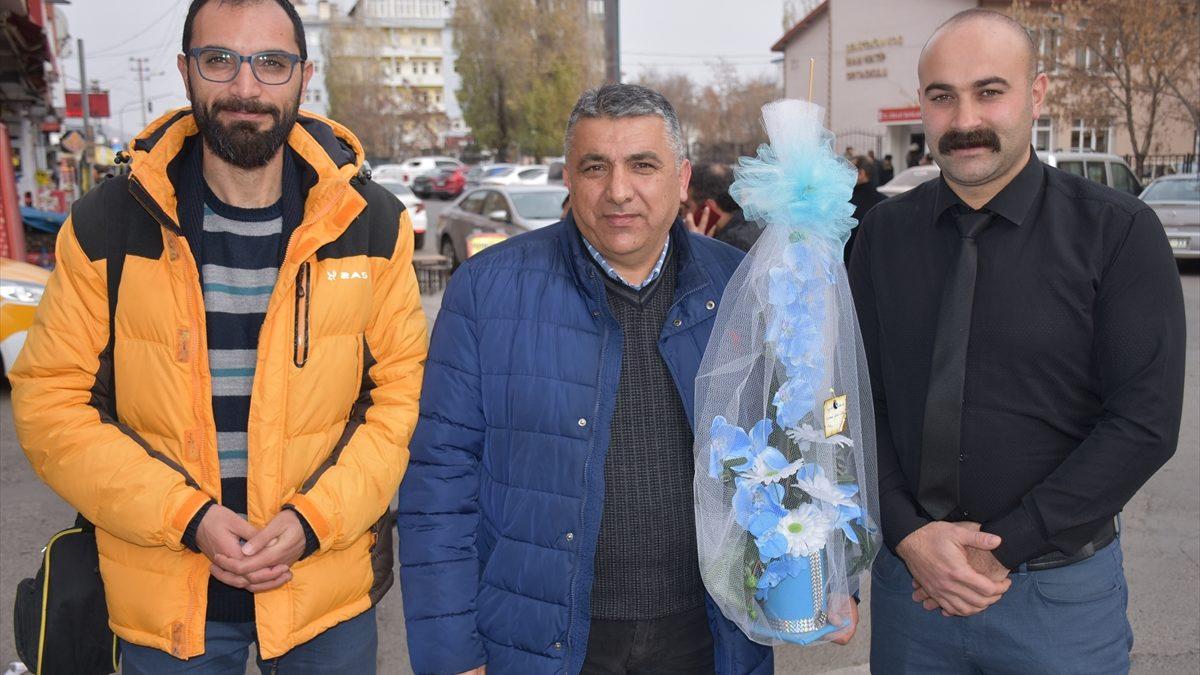 Alparslan Anadolu Lisesinde görevini sürdüren öğretmenlerinin kent merkezinde alışveriş yaptığını öğrenen Karabağ ve Avınca, çiçek alarak yanına gitti.