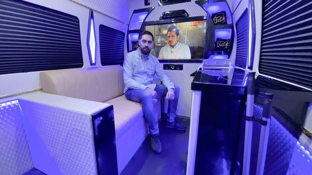 Ülkede benzeri olmayan minibüste, bir erkek kuaföründe olması gereken tüm ekipmanın yanı sıra müşterinin yakınları için televizyon ve oyun imkanı bulunuyor.