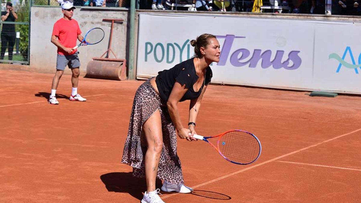 Hülya Avşar derin yırtmacıyla kortta