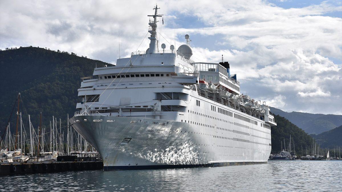 Marmaris Cruise Port'un büyük iskelesine yanaştırılan gemide, çoğu İngiliz bin 454 turist ve 605 personelin bulunduğu belirtildi.