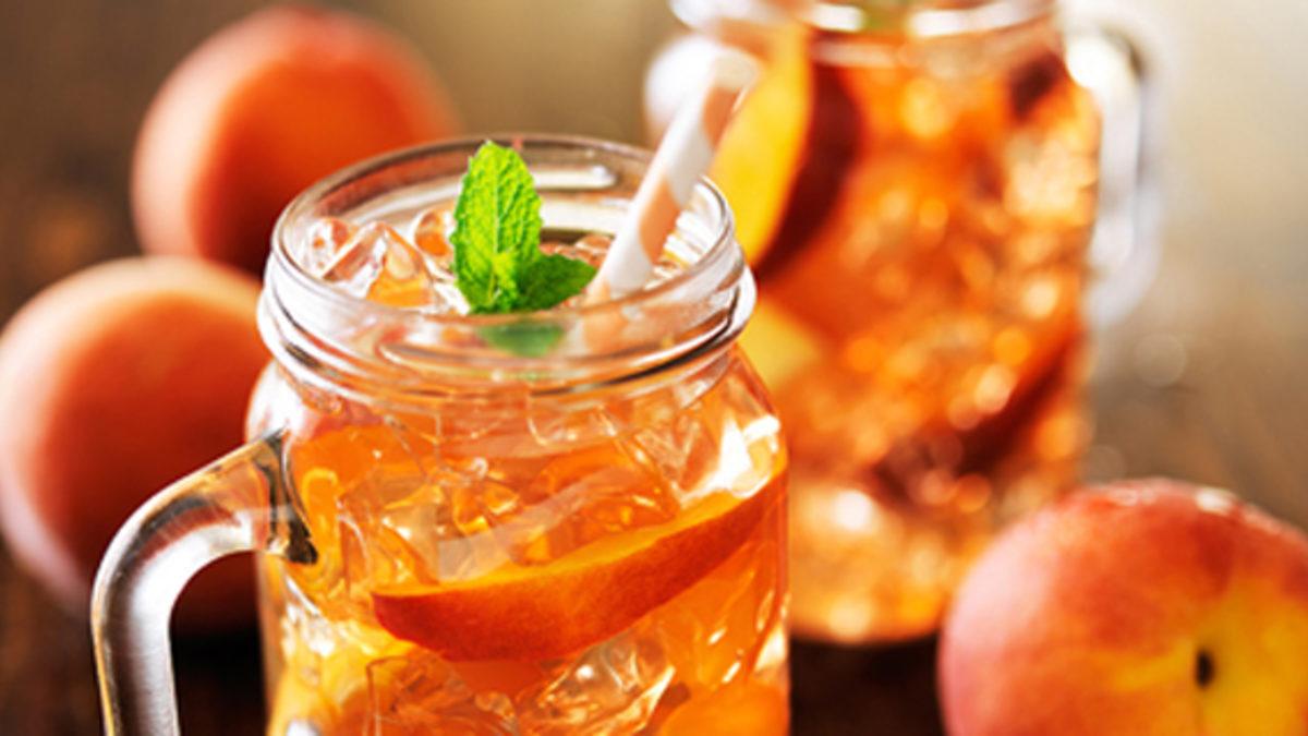 Demlenen çayı bir sürahiye alın, ılıkken şeftali ve balı da ekleyin.
