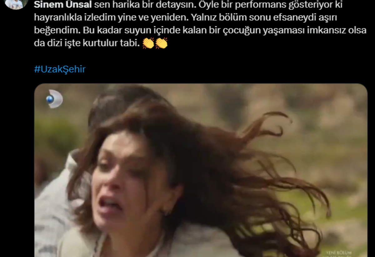 Uzak Şehir'in 20. bölümü yine seyirciyi mest etti. Alya annesiyle ilgili gerçeği Cihan'a anlattı. Alya'nın oğlunun kaybolması ve sonrasında yaşananlar da sosyal medyada çok konuşuldu. Alya'ya hayat veren Sinem Ünsal ise son bölümde oyunculuğuyla sosyal medyayı salladı.