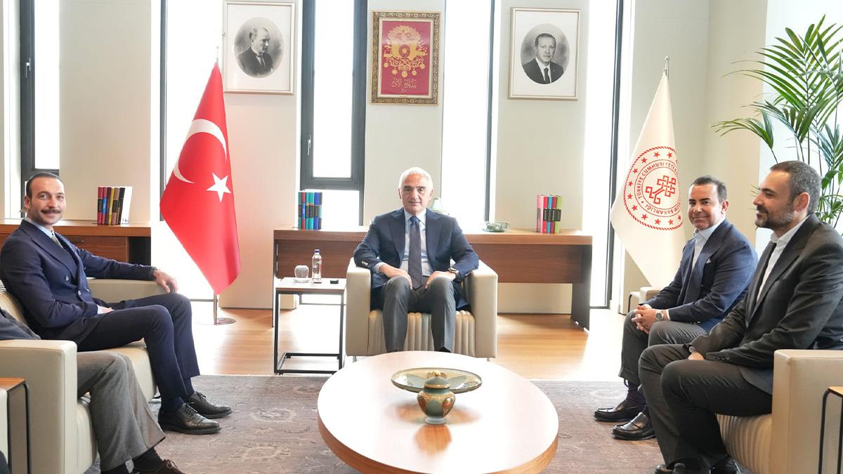 Kültür ve Turizm Bakanı Mehmet Nuri Ersoy, sanatçı Görkem Sevindik ile İstanbul Atatürk Kültür Merkezi'nde bir araya geldi.