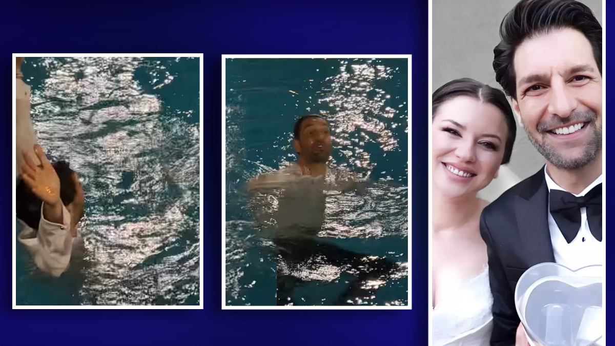 Taner Rumeli gecede bol bol göbek atarken arkadaşları tarafından da havuza atıldı.