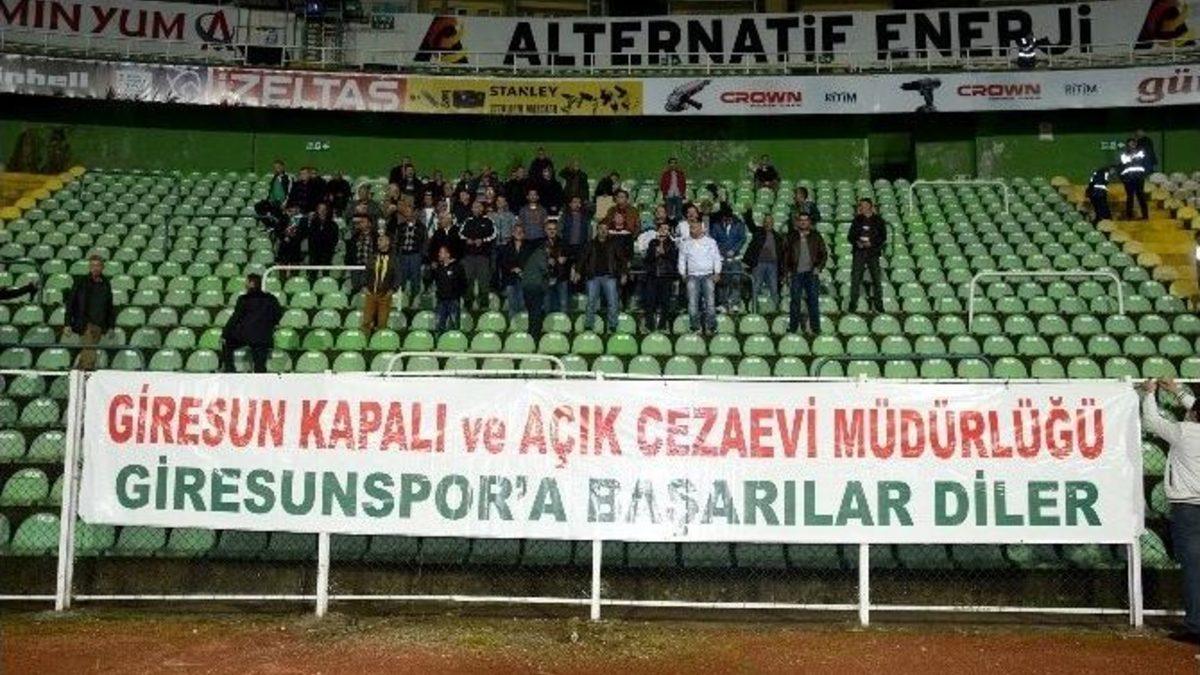 Giresun Kapalı ve Açık Cezaevinde hükümlü olarak bulunan mahkumlar Giresunspor ile Boluspor arasında oynanan TFF 1. Lig karşılaşmasını statta izledi.Cumhuriyet Başsavcısı Ozan Kaya’nın talimatı ile infaz koruma memurlarının nezaretinde Atatürk Stadyumu’nun dağ tarafı kale arkasındaki yerlerini alan mahkum taraftarlar, “Giresun Kapalı ve Açık Cezaevi Müdürlüğü Giresunspor’a başarılar diler” pankartı açtılar.Giresun Cumhuriyet Başsavcısı Ozan Kaya, “Daha önce görev yaptığım Çorum, Çankırı ve Sinop illerinde mahkumların iyileştirilmesi, sosyalleştirilmesi ve toplumla bütünleşmesini sağlamak amacıyla düzenlenen etkinlikler kapsamında böyle bir karar aldık” dedi.Giresunsporlu futbolcular da sahaya çıkarken mahkumların bulunduğu tribünü alkışladı.