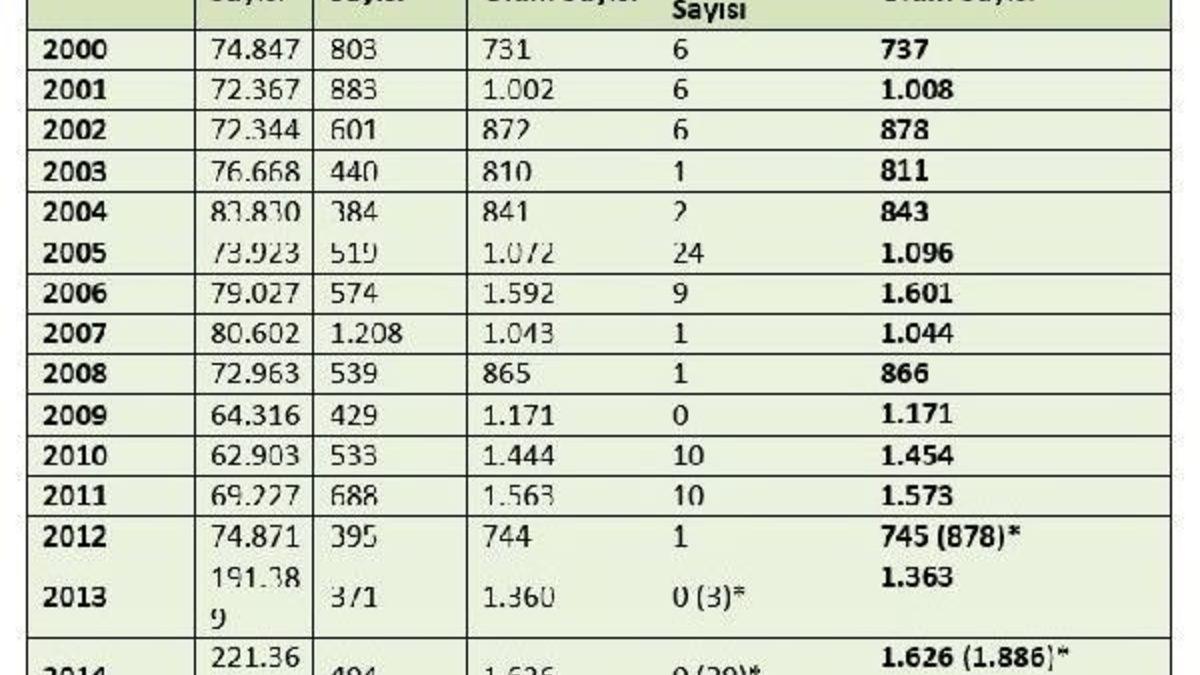 - TMMOB Makina Mühendisleri Odası (MMO), İşçi Sağlığı ve İş Güvenliği Oda Raporu’nda 2012-2015 yıllarında iş kazası sayılarında sürekli artış