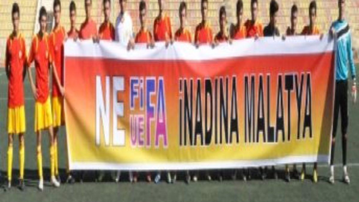 Malatya 1. Amatör Küme Büyükler Liginde mücadele eden Malatyaspor, Telekomspor maçına "Ne FIFA ne UEFA İnadına Malatya" pankartıyla çıktı.