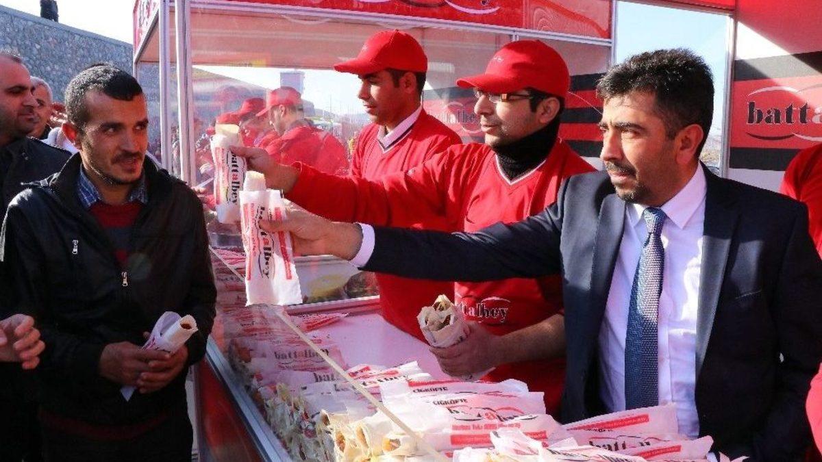 Evkur Yeni Malatyaspor-Beşiktaş mücadelesi öncesi Malatya Stadyumu’nda taraftarlara çiğ köfte ikramı yapıldı.Süper Lig’in 13. haftasında oynanacak olan Evkur Yeni Malatyaspor-Beşiktaş mücadelesi öncesinde taraftarlara çiğ köfte ikramı yapıldı. Evkur Yeni Malatyaspor Asbaşkanı ve aynı zamanda Battalbey Çiğ Köfte’nin sahibi Sait Aybak, taraftarların tribüne ilgisini arttırmak amacıyla Malatya Stadyumu çevresinde taraftarlara 27 bin 44 adet çiğ köfte dürüm dağıttı. Çiğ köfte dağıtımı sırasında stantta bulunan Asbaşkan Sait Aybak, İhlas Haber Ajansı muhabirine açıklamalarda bulundu. Maç öncesi böyle bir organizasyon yapacaklarını daha önce duyurduklarını dile getiren Aybak, “Hem misafir taraftarımıza hem de stada gelen bütün taraftarlarımıza çiğ köfte dağıtıyoruz. Doğu ve Güney Doğu Bölgesi’nin tek temsilcisi Evkur Yeni Malatyapsor olduğu için burada misafirperverliğimizi göstermek istiyoruz. Hem de Beşiktaş gibi bize İstanbul’da kapılarını açtığı için böyle bir jest yapalım dedik. Hem de büyük takıma karşı misafirperverliğimizi göstermek için çiğ köfte dağıtıyoruz. Stadımızın kapasitesi 27 bin 44, ve biz de 27 bin 44 tane çiğ köfte dürüm yaptık. Gelen herkese çiğ köfte dağıtıyoruz” şeklinde konuştu.“İnşallah galibiyetle ayrılırız”Beşiktaş karşılaşmasında galibiyet ve yenilmemeyi hedeflediklerini söyleyen Aybak, "Spor müsabakalarında fazla rastlanan bir olay değil. Aslında bir ilki de gerçekleştirdik sayılır. Bundan sonraki müsabakalarda da zaman zaman böyle çiğ köfte organizasyonları yapmak istiyoruz. Amaç stadımızı doldurmak. Öğrendiğim kadarıyla da Allah’a şükürler olsun bütün biletler tükendi. Stadımız tıklım tıklım dolu olacak. Neticesinde maçta da yanık seslerle inşallah galibiyetle veya beraberlikle ayrılırız diye düşünüyorum" diye konuştu.