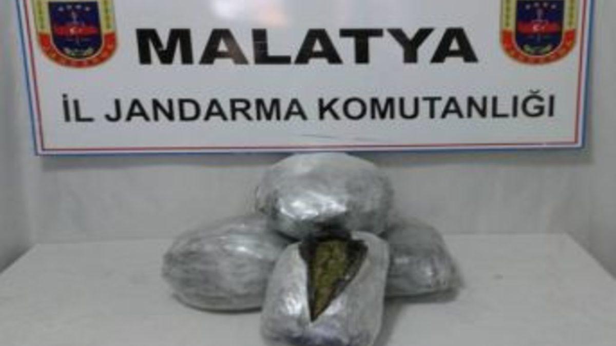 Malatya’da iki ayrı operasyonda toplam 56 kilo 900 gram esrar ele geçirildi.Edinilen bilgiye göre, Jandarma tarafından Kale ilçesinde icra edilen yol emniyet ve kontrol devriyesi esnasında bir yolcu otobüsünde yapılan kontrolde, 46 kilo 800 gram kubar esrar maddesi ele geçirildi. Olayla ilgili T.P. isimli şahıs Cumhuriyet Savcısının talimatı ile gözaltına alındı.Bu arada, Darende İlçesinde bir yolcu otobüsünde yapılan kontrolde, 10 kilo 100 kilogram kubar esrar maddesi ele geçirildi.Olayla ilgili F.C. isimli şahıs Cumhuriyet Savcısının talimatı ile gözaltına alındı.Her iki olayla ilgili tahkikatın sürdürüldüğü kaydedildi.