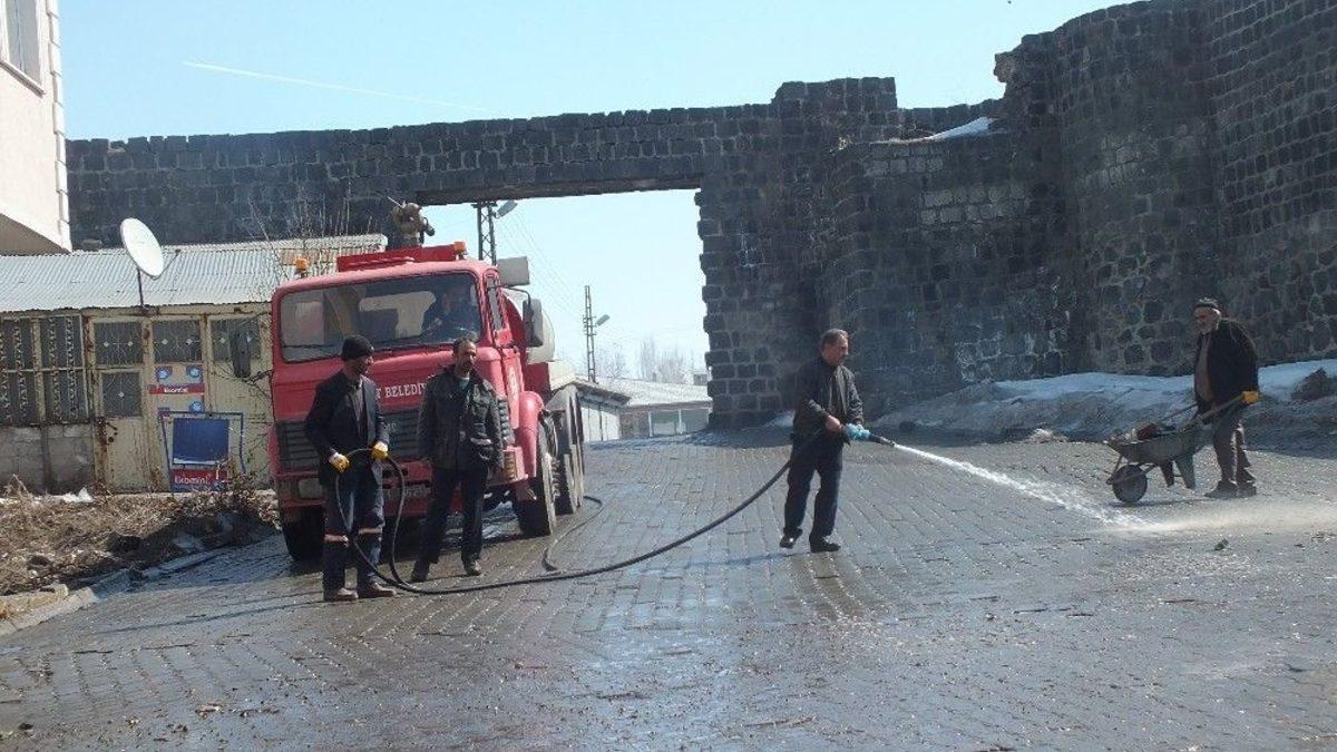 Muş’un Malazgirt Belediyesi, baharın gelmesiyle birlikte cadde ve sokaklarda temizlik çalışmaları başlattı.Ana ve ara caddelerde hummalı bir şekilde bahar temizliğine başlayan Malazgirt Belediyesi ekipleri, yol ve kaldırımlarda bulunan çöpleri temizledikten sonra yıkadı. Malazgirt Belediye Temizlik Şefi Feyat Yanar, “İlçe merkezindeki cadde ve sokaklar başta olmak üzere hepsini temizleyip yıkamayı düşünüyoruz. Yaklaşık bir hafta içerisinde ilçemizi tertemiz yapacağız. İlçemizin bahar temizliğini en kısa zamanda bitirip, yaşanabilir temiz bir ortam hazırlayacağız” dediMalazgirt halkından çevre temizliği konusunda daha hassas davranmalarını isteyen Yanar, “Bu yıl kış çok çetin geçti. İlçe merkezi ve köylerimize metrelerce kar yağdı. Havaların ısındığı bugünlerde Belediye Başkan Vekilimiz Sayın Soner Kırlı’nın talimatları doğrultusunda, rutin bir bahar temizliği yapacağız. Başkan vekilimiz bu temizlik konusuna çok önem veriyor. Bahar aylarına temiz girelim dedik. Genel bir bahar temizliği niteliğinde yürüttüğümüz bu çalışmalar bir hafta sürecek” şeklinde konuştu.
