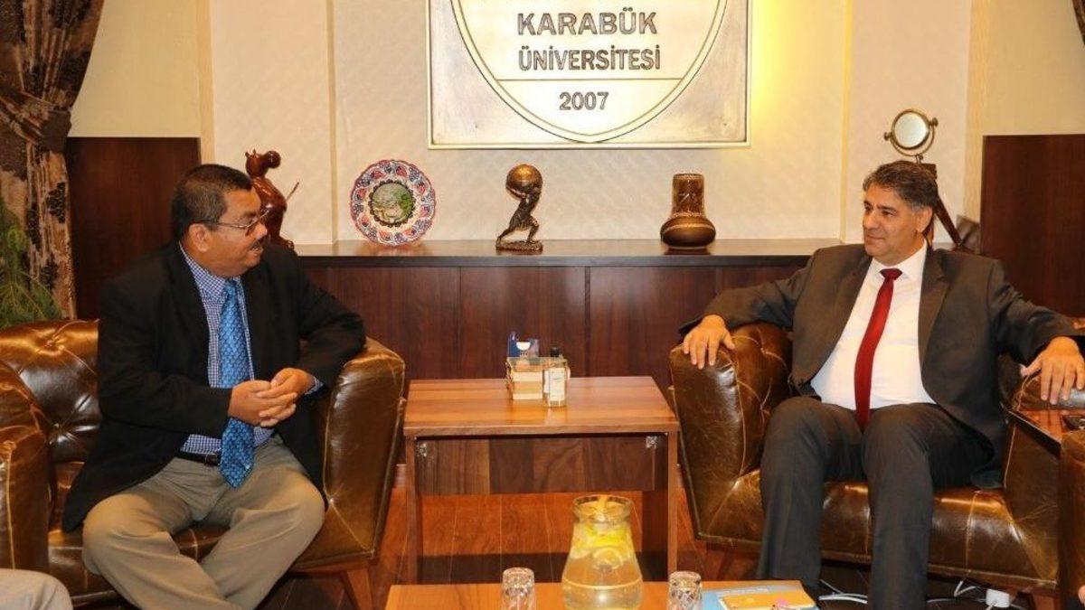 “Uluslararası Endüstri 4.0 ve Uygulamaları Sempozyumu” için Karabük Üniversitesi’ne gelen Malezya Perlis Üniversitesi (UniMAP) Rektörü Prof. Dr. Zul Azhar Zahid Jamal, Üniversite kampüsü içerisinde ve Kardemir’de çeşitli ziyaretlerde bulundu.KBÜ Rektörü Prof. Dr. Refik Polat, Malezyalı mevkidaşı Prof. Dr. Zul Azhar Zahid Jamal’ı ve beraberinde gelen Girişimcilik Geliştirme, Ticarileştirme ve Fikri Mülkiyet Yönetimi Merkezi Müdürü Prof. Dr. Rosni Bakar’ı makamında ağırladı.Ziyaretler kapsamında ilk olarak Rektör Polat ile bir araya gelen, konuk Rektör Prof. Dr. Jamal burada yaptığı açıklamada, iki üniversite arasındaki akademik alanlarda güçlü iş birliğinin bulunduğunu belirterek ziyaretten duyduğunu memnuniyeti dile getirdi.Polat da gerçekleştirdikleri yurt dışı ziyaretlerin ve yapılan iş birliklerinin önemine işaret ederek Karabük Üniversitesi’nin özellikle son yıllarda artan uluslararasılaşma anlamında attığı adımlardan söz etti.Rektör Polat ayrıca, Malezyalı mevkidaşına Üniversite, Kardemir ve pek çok sanayi kuruluşuyla kurduğu üniversite sanayi iş birliklerinin yanı sıra Üniversitenin akademik birimleri ve kampüste yer alan tesisleriyle ilgili bilgiler de aktardı.Ziyaret sonunda iki Rektör karşılıklı hediye takdiminde bulundu.Malezya Perlis Üniversitesi Rektörü Prof. Dr. Zul Azhar Zahid Jamal ve heyetinin bir sonraki ziyareti sırasıyla Demir Çelik Enstitüsü, Teknoloji Fakültesi ve Fen Fakültesi oldu.Rektör Yardımcısı Prof. Dr. Mustafa Yaşar’ın eşlik ettiği ziyaretlerde Demir Çelik Enstitüsü’nde kısa bir bilgilendirme sunumları yapıldı. Demir Çelik Enstitüsü’nü ve ona bağlı MARGEM laboratuvarlarını gezen heyet, burada araştırma yapan akademisyenlerle de bir görüşme yaparak bilgi alışverişinde bulundu.Konuk Rektör Prof. Dr. Zul Azhar Zahid Jamal ve heyetinin bir sonraki durağı ise Karabük Demir ve Çelik Fabrikası (KARDEMİR) oldu. Rektör Yardımcısı Prof. Dr. Mustafa Yaşar’ın eşlik ettiği ziyarette, heyet kok fabrikaları, haddehaneleri ve 1600 derece sıcaklıkta üretimlerin yapıldığı yüksek fırınları gezerek bilgiler aldı.Ziyaret hatıra fotoğrafı çekilmesiyle sona erdi.
