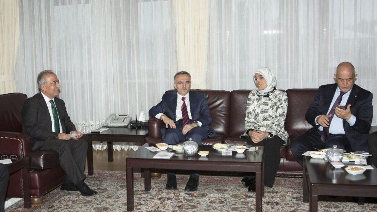 Bir takım ziyaretler ve temaslarda bulunmak üzere Erzurum’a gelen Maliye Bakanı Naci Ağbal, Atatürk Üniversitesi Rektörü Prof. Dr. Ömer Çomaklı’yı ziyaret etti.Rektörlük makamında gerçekleşen ziyarete, Erzurum milletvekilleri Prof. Dr. Mustafa Ilıcalı ve Zehra Taşkesenlioğlu, Erzurum Büyükşehir Belediye Başkanvekili Eyüp Tavlaşoğlu ile AK Parti Erzurum İl Başkanı M. Emin Öz katıldı.Bakan Ağbal’ı Rektörlük girişinde karşılayan Rektör Prof. Dr. Ömer Çomaklı, Atatürk Üniversitesi hakkında bilgi verdi. Üniversitenin öğrenci ve öğretim üyesi sayılarını aktaran Çomaklı, yaklaşık 300 bin öğrenci ve 2 bin 700 akademisyene sahip olduğunu belirterek, Atatürk Üniversitesi’nin Türkiye’ye ve bölge ülkelerine hizmet eden büyük bir eğitim merkezi olduğunu ifade etti. Rektör Çomaklı ayrıca, Maliye Bakanı Ağbal’a, Teknokent, Doğu Anadolu Gözlemevi (DAG), Doğu Anadolu Yüksek Teknoloji Uygulama ve Araştırma Merkezi (DAYTAM), Bilimsel Araştırma Projeleri (BAP) Koordinasyon Birimi, ve Proje Ofisi gibi önemli birimlerin çalışma alanları ve faaliyetleri hakkında da bilgi verdi.Atatürk Üniversitesi’nin Doğu Anadolu’nun merkezi olduğunu söyleyen Bakan Naci Ağbal ise, yapılacak bilimsel çalışmalara Maliye Bakanlığının her türlü desteği sağlamaya hazır olduğunu söyledi. Üniversitelerin, belirli alanlara yönelmelerini ve bu alanlarda uzmanlaşmaları gerektiğini söyleyen Bakan Ağbal, üniversite-toplum ve üniversite-sanayi iş birliklerinin kuvvetlendirilmesinin de olumlu sonuçlar doğuracağını söyledi.Ziyaretin ardından Atatürk Üniversitesi Gösteri Sanatları Merkezine geçen Bakan Ağbal, burada gençlerle bir araya geldi.Konferansta konuşan Ağbal, devletimizin eğitimi en öncelikli mesele olarak gördüğünü ifade ederek şunları söyledi: “Türkiye büyüyecekse ve kalkınacaksa, bilimde ve teknolojide söz sahibi olacaksa, global rekabet liginde ön sıralara çıkacaksa, bunun olmazsa olmazı eğitimin hem nicel olarak hem de niteliksel olarak artırılmasıdır” dedi.