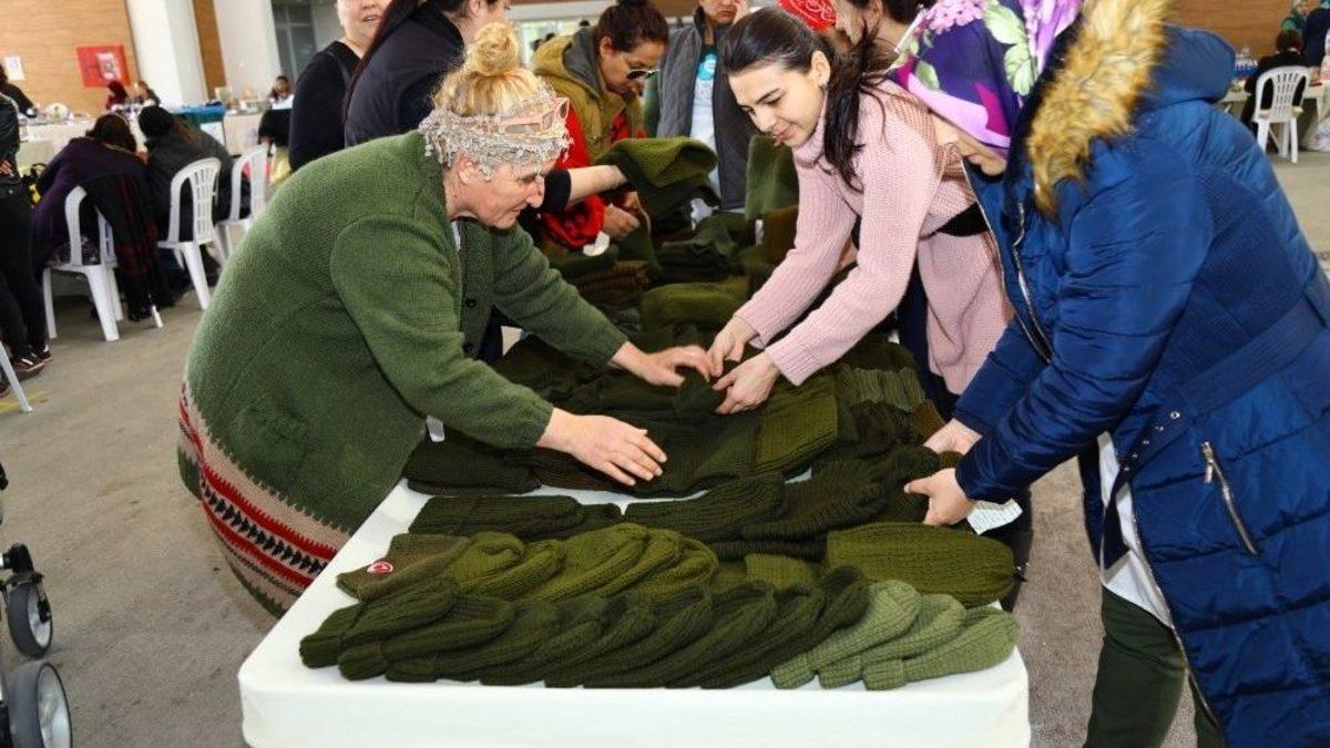 Manavgat Belediyesi Toros Kadınları Emek Pazarı’nda tezgah açan kadınlar Zeytindalı Harekatı’nda Türkiye’nin huzuru için savaşan ve doğuda görev yapan Mehmetçiklere göndermek amacıyla atkı ve bere ördü. Kadınlar 15 gün içinde ördükleri, 300 atkı ve bereyi, içlerine çocuklar tarafından yazılan ve duygularını ifade eden duygusal mektuplarla birlikte gönderdi.Manavgat Belediyesi Toros Kadınları Emek Pazarı’nda buluşan kadınlar, atkı ve bereleri gönderilmek üzere birlikte paketleyip hazırladı. Kadınlar yazdıkları duygusal mektuplarda, “Rabbim Yar ve yardımcınız olsun. Sevdiklerinize kavuşmayı nasip etsin. Sizler her zaman dualarımızdasınız. Bu örgü hem bere olarak hem atkı olarak kullanılabiliyor. İplerini sıkıştırırsanız bere, gevşetirseniz boyunluk olur. Rabbim soğuktan da, sıcaktan da, düşmandan da sizleri her daim korusun. Allah’a emanetsiniz” derken, 7 yaşındaki Eymen Şahin isimli bir çocuk ise mektubunda, “Ey Mehmetçik. Sen kimsin. Sen cumhuriyeti kuran, sen milletimizi koruyan askersin. Sizi herkes çok seviyor. İnşallah Zeytin Dalı Harekatı’nı siz kazanacaksınız. Sizi çok seviyorum. Sizlere buralarda dua ediyoruz” sözlerine yer verdi.Böylesine anlamlı bir çalışma yapan kadınlara duyarlılıklarından dolayı teşekkür eden Manavgat Belediye Başkanı Şükrü Sözen, “Türkiye’mizin varlığı, birliği ve bütünlüğü için Afrin’de savaşan kahraman Mehmetçiklerimiz, bir an bile aklımızdan çıkmıyor. Onların sağ salim dönerek ailelerine kavuşmaları en büyük isteğimiz. Terör son bulsun, Mehmetçiklerimiz zarar görmeden evlerine dönsün. Ülke olarak dayanışma içerisinde herşeyin üstesinden geliriz. Manavgatlı kadınlarımız da bu birlik ve beraberliğin en güzel örneğini verdi. Teşekkür ediyorum” dedi.