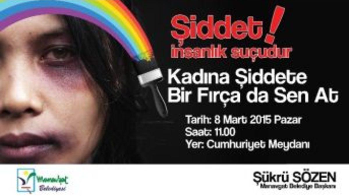 Antalya’nın Manavgat ilçesi’nde 8 Mart Dünya kadınlar gününde kadınlar, kadına şiddete fırça atacak.Antalya’nın Manavgat ilçesi’nde kadınları şiddete mesajı vermek amacıyla 8 Mart dünya kadınlar gününde “Kadına Şiddete Bir Fırça da Sen At” etkinliği düzenlenecek. Manavgat Cumhuriyet meydanında düzenlenecek olan “Kadına Şiddete Bir Fırça da Sen At” etkinliği kadınları davet eden Belediye Başkanı Şükrü Sözen, bu yıl 8 Mart Dünya Emekçi Kadınlar Günü bilboard kutlamalarında da toplumsal mesaj vermeyi tercih ettiklerini söyledi. Sözen,“Şiddet bir insanlık suçudur. Türkiye’de her 10 kadından 4’ünün şiddete uğruyor olması son derece üzücüdür. Şiddetin insanlık suçu olduğunu, kadına yönelik şiddetin ise yanlış olduğunu toplumumuza anlatmak yerel yönetimlerin görevleri arasında yer almaktadır” dedi.