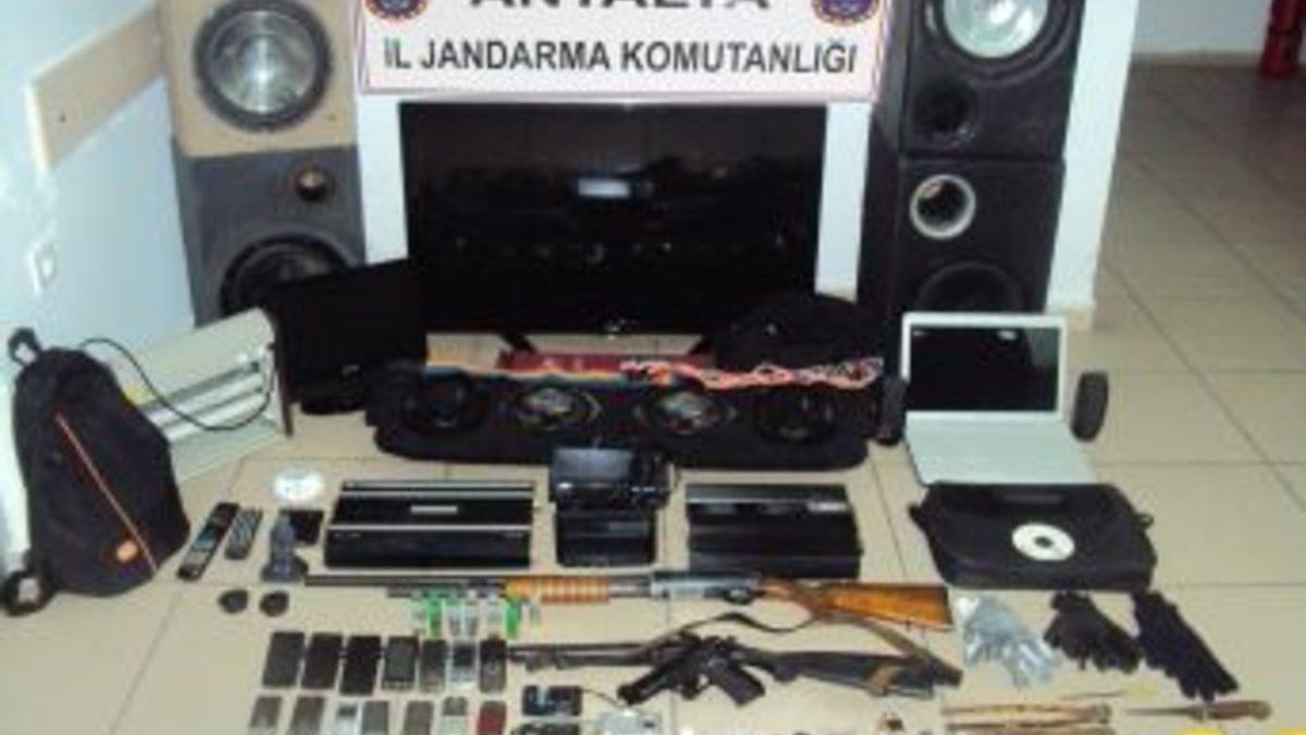 Antalya'nın Manavgat ilçesinde jandarma ekipleri, yaptığı operasyonla 25 olayı aydınlattı. Manavgat İlçe Jandarma Komutanlığı ekipleri tarafından yapılan hırsızlık operasyonunda çalıntı olduğu iddia edilen çok sayıda malzeme ele geçirildi. Olayla ilgili 4 kişi gözaltına alındı. Manavgat'ın Ilıca beldesinde jandarma ekipleri tarafından bir eve operasyon düzenlendi. Operasyon kapsamında evde hırsızlık olduğu iddia edilen 16 adet değişik markalarda cep telefonu, 2 adet kol saati, 3 adet fotoğraf makinesi, 6 adet flaşbellek, 1 kuru sıkı tabanca, 2 adet pompalı av tüfeği ve silahlara ait mermiler, otomobillere ait 3 anfi ile 8 hopörlör, uydu cihazı, 2 adet LCD televizyon, 1 adet DVD çalar, 1 adet diz üstü bilgisayar, 1 adet motosiklet ele geçirildi. Çalantı eşyaların bulunduğu adreste kimse bulunmazken jandarma ekipleri polis ekipleri ile ilçe merkezinde 2 eve daha operasyon düzenledi. Operasyon kapsamında A.G, B.N, H.B,A.K. gözaltına alındı. Zanlıların jandarmadaki ifadeleri sürüyor. Jandarma bölgesi olan Manavgat'ın Sarılar, Side ve Ilıca beldelerinde 16 hırsızlık olayı polis bölgesi olan Manavgat ilçe merkezinde ise 5 hırsızlık olayı, Serik’in Belek ve Boğazkent bölgesinde gerçekleşen 4 hırsızlık olayı aydınlatıldı. Çalıntı olarak ele geçirilen malzemelerin sahiplerine teslim edildiği bildirildi.
