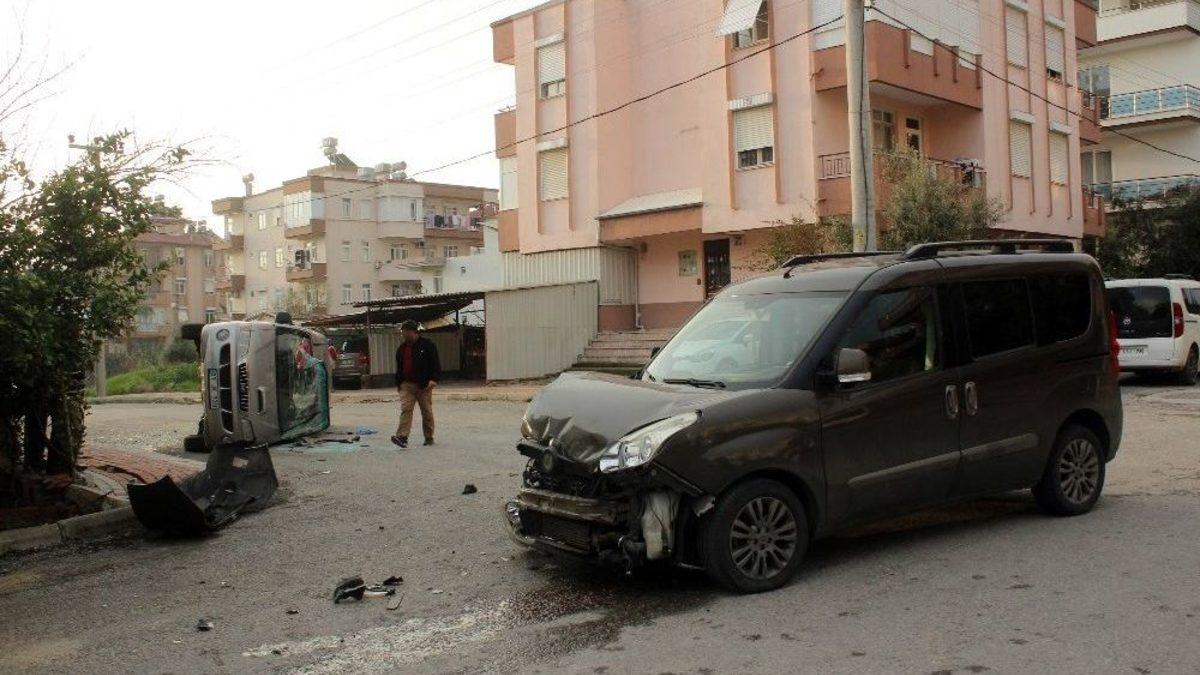 Antalya’nın Manavgat ilçesinde 1 kişinin yaralandığı trafik kazası güvenlik kamerası tarafından saniye saniye kaydedildi.Edinilen bilgiye göre, Oğuz Gün’ün kullandığı 07 JK 739 plakalı hafif ticari araç ile Vakkas Kozak’ın kullandığı 07 LBU 62 plakalı hafif ticari araç Manavgat Emek Mahallesi’nde kontrolsüz kavşakta çarpıştı. Kazada, devrilen 07 JK 739 plakalı aracın sürücüsü Oğuz Gün yaralandı. Ambulans ile hastaneye kaldırılan yaralının sağlık durumunun iyi olduğu bildirildi.Kaza anı kavşakta bulunan bir apartmanın güvenlik kamerasına yansıdı.