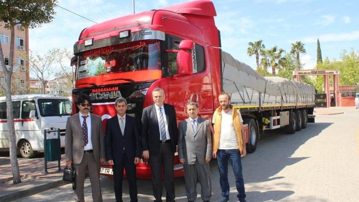 Antalya’nın Akseki, Manavgat, Gündoğmuş ve Serik ilçelerinde öğrenci ve öğrenci velileri tarafından sağlanan kırtasiye ve giyecek malzemeleri Suriye’nin Cerablus şehrine gönderildi.Akseki, Manavgat, Gündoğmuş ve Serik ilçe Milli Eğitim Müdürlükleri organizesinde öğrenci ve öğrenci velilerinin katkılarıyla toplanan yardım malzemeleri dualar eşliğinde Manavgat’tan tır ile Cerablus’a gönderildi. Uğurlama törenine Manavgat Kaymakamı Nazmi Günlü, Manavgat Müftü Vekili Saffet Sevim, Manavgat Milli Eğitim Müdürü Muammer Sarıdemir ve şube müdürleri katıldı.Yardım tırı Manavgat Kaymakamı Nazmi Günlü’nün konuşması ve Manavgat Müftü Vekili Saffet Sevim’in duasının ardından Manavgat’tan Cerablus’a doğru yola çıktı. Kaymakam Günlü, “Yaşanan bu insanlık dramını hep beraber ibretle görüyoruz maalesef. Son iki gündür de tekrar gündemde daha yoğun şekilde bu kimyasal saldırı sonucunda tekrar gündeme geldi, netice itibariyle bu insanlık dışı kimyasal saldırı sonucu orda bir sürü masum İnsan, Kadın, Çocuk demeden canına kıydı. Ona misilleme için büyük devletler bir saldırı yaptılar bunda da yine Müslümanlardan, sivillerden kayıplar var. Daha önce Müftülüğümüz koordinesinde yapmıştık, geçen hafta Antalya’dan Milli Eğitim Müdürlüğünce gönderilen yardıma katkı yapmıştık, bu hafta da komşu ilçelerle beraber bir tır yardım malzemesini daha oradaki ihtiyaç sahiplerine ulaştırmaya çalışıyoruz” dedi.