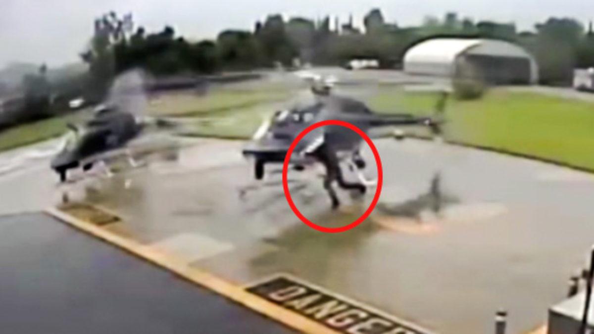 Manevra yaparken yerdeki helikoptere çarpan pilot.