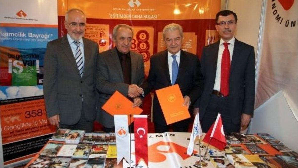 İzmir Ticaret Odası Yönetim Kurulu ve İzmir Ekonomi Üniversitesi (İEÜ) Mütevelli Heyet Başkanı Ekrem Demirtaş ile Manisa Ticaret ve Sanayi Odası Yönetim Kurulu Başkanı Yaşar Coşkun arasında, Manisalı gençlerin aydınlık geleceği için protokol imzalandı.Manisa Educatürk Eğitim Fuarı’nda imzalanan protokolle Manisa Ticaret ve Sanayi Odası ile Manisa İlçe Ticaret Odaları üyelerinin birinci derece yakınları, İzmir Ekonomi Üniversitesi’ndeki eğitim ücretlerinde yıllık yüzde 15 indirim hakkı kazandı. Törene, Başkan Demirtaş ve Coşkun’un yanı sıra İEÜ Rektörü Prof. Dr. Oğuz Esen, Manisa Ticaret ve Sanayi Odası Meclis Başkanı Hayati Dolman ile Manisa Ticaret ve Sanayi Odası Yönetim Kurulu Başkan Yardımcısı Ali Bankoğlu katıldı.İEÜ Mütevelli Heyet Başkanı Ekrem Demirtaş, İzmir Ticaret Odası’nın 1. İktisat Kongresi’nde ataların vasiyetini yerine getirmek için 2001 yılında İzmir Ekonomi Üniversitesi’ni kurduğunu belirterek, “1. İktisat Kongresi’nde toplanan tüccar kesimi, tutanaklarda yer alan şekliyle, ’Büyük şehirlerde ticaret odaları üniversiteler kurmalıdır’ demektedir. Biz 2001 yılında İzmir Ekonomi Üniversitesi’ni kurarken hem 1923 yılındaki vasiyetten hem de Atatürk’ün kongrede söylediği, ‘Ekonomi demek her şey demektir’ sözünden esinlendik. Bu nedenle iş odaklı, iş âleminin ihtiyacına cevap verecek şekilde öğrencileri eğitme misyonuyla yola çıktık” dedi.’İZMİR, MANİSA’YLA, MANİSA, İZMİR’LE GÜÇLÜ’13 yılda dünyanın 500 üniversitesi sıralamasında yer aldıklarını, TÜSİAD girişimcilik bayrağının Balçova kampüs alanında dalgalandığını anımsatan Başkan Demirtaş, şunları söyledi:“Dünya artık tek bir pazar haline geldi. Dünyanın ortak lisanı İngilizce oldu. Tüm derslerimiz yüzde yüz İngilizce veriliyor. Afrika, Asya, Amerika ve Avrupa’dan öğrenciler ve öğretim üyelerimiz var. Manisa bizim en yakınımızda İzmir’le bütünleşmiş bir kent. Üniversitemizde çok sayıda Manisalı öğrencimiz var. Geçtiğimiz yıl YÖK’ün onayıyla İzmir Ticaret Odası üyelerine yüzde 15 indirim yapmıştık. Manisa Ticaret ve Sanayi Odamızdan gelen isteği de değerlendirdik. Manisalı iş adamlarının çocuklarına yüzde 15 indirim yapacağız. Manisa organize sanayi bölgeleriyle geleceğe götürecek öğrencileri yetiştirmek istiyoruz. İzmir Manisa’yla güçlü, Manisa da İzmir’le güçlü.”"GÖNLÜMÜZ ÇOK RAHAT"Manisa Ticaret ve Sanayi Odası Yönetim Kurulu Başkanı Yaşar Coşkun da üniversiteyi kurulduğu ilk günden bu yana yakından izlediklerine dikkat çekerek, “İndirimin Manisa’ya da yansıtılması bizleri memnun etti. Gönül rahatlığıyla öğrencilerimizi İzmir Ekonomi Üniversitesi’ne gönderiyoruz. Eğitimden, güven ortamından şüphemiz yok. Burada üniversitenin bir bölümünü yapabiliriz. Her türlü yardım ve desteğe hazırız” dedi.İEÜ Rektörü Prof. Dr. Oğuz Esen de üniversitenin bugün 8 fakültesi, 2 meslek yüksekokulu, 2 yüksekokulu ve 2 enstitüsü ile 7 bini aşkın öğrenciye sahip olduğunu kaydederek, Manisalı gençleri nitelikli eğitim için İzmir Ekonomi Üniversitesi’ne beklediklerini ifade etti.