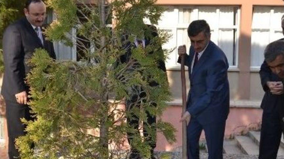 Şehzadeler Manisa Mesleki ve Anadolu Teknik Lisesi okul idaresi, okullarını ziyarete gelen Manisa Valisi Erdoğan Bektaş’a günün anısına plaket yerine fidan hediye etti. Vali Bektaş, kendisine hediye edilen fidanı okul bahçesine dikerek can suyunu verdi.Vali Erdoğan Bektaş, Şehzadeler Manisa Mesleki ve Anadolu Teknik Lisesi okul idarecilerini ziyaret etti. Ziyarette konuşan okul müdürü Ömer Bozoğlu, geçtiğimiz günlerde Başbakan Ahmet Davutoğlu’nun ziyaretlerde plaket alıp vermek yerine ağaç dikimini tavsiye etmesinin ardından okullarını ziyarete gelen Manisa Valisi Erdoğan Bektaş’a günün anısına plaket sunmak yerine fidan almayı uygun gördüklerini söyledi. Bozoğlu, “Sayın Valimiz okulumuzla yakından ilgilenerek bizlere her konuda yardımcı oluyor. Başbakan Sayın Ahmet Davutoğlu ziyaretlerde plaket yerine ağaç dikimini tavsiye etmişti. Biz de okul idaresi olarak okulumuzu bugün ziyarete gelen sayın Valimize günün anısına fidan hediye etmeyi düşündük. Bu amaçla Muradiye Orman Fidanlığı’ndan Leylandi fidanı aldık. Sağ olsunlar, aldığımız bu fidanı okulumuzun bahçesine kendi elleriyle diktiler. Dikilen bu fidan yıllar sonra büyüyüp geliştiğinde de Sayın Valimizin adının anılmasına vesile olacak” dedi.Okul idaresinin bu düşüncesini takdirle karşıladığını belirten Vali Erdoğan Bektaş da kendisine hediye edilen fidanı okul bahçesine dikerek ilk can suyunu verdi.