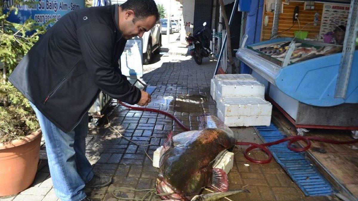 Manisa’nın Salihli ilçesinde, Demirköprü Baraj Gölü’nde yakalanan 2 metre 50 santim boyunda ve 128 kilo gram ağırlığındaki dev yayın balığı görenleri şaşırttı.Demirköprü Baraj Gölü’nde balıkçı Cemil Demir tarafından ağ atma yönetimi ile yakalanan 128 kilo gram ağırlığındaki yayın balığı ise Salihli ilçesinde bir balıkçıda satışa çıkarılırken, dev yayın balığını görenler ise şaşkınlığını gizleyemeyip bol bol fotoğraf çekti.Dev balığın satışa çıkarıldığı işyeri sahibi İbrahim Hemitli, baraj gölünde bugüne kadar balıkçılar tarafından 100 kilogram civarı çok sayıda balık yakalandığını ancak bu balığın son yıllarda yakalanan en büyük yayın balığı olduğunu söyledi.Dev balığı kilogram hesabı olarak satışa çıkardıklarını belirten Hemitli, işyeri önünde sergiledikleri balığın boyutuyla vatandaşlar tarafından ilgi odağı olduğunu belirtti. Kiminin balığı merak ettiğini, kiminin ise bol bol fotoğraf çektiğini dile getiren Hemitli “Yayın balığı da lezzeti itibariyle tercih edilen bir tür. Demirköprü Baraj Gölü’nde 200 kilogram ve daha üstü yayın balıkları da mevcut ancak bu balıkları ağırlıkları nedeniyle yakalamak kolay değil” dedi.