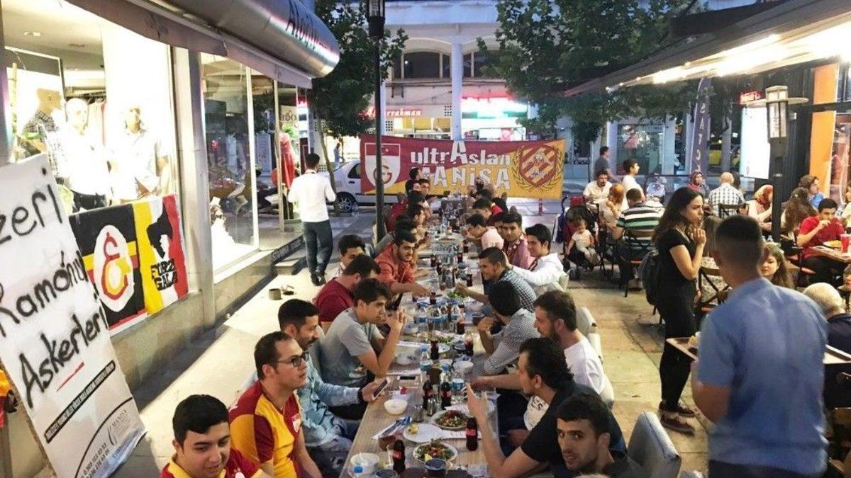 Manisa’da Galatasaraylı taraftarlar düzenledikleri iftar yemeğinde bir araya geldi.Ezanın okunmasıyla birlikte dualarla oruçlarını açan Galatasaraylı taraftarlar, Ramazan ayında birlik ve beraberlik vurgusu yaptı. İftar yemeği programını bundan sonra her yıl Ramazan ayında geleneksel hale getirmeyi planladıkları söyleyen Manisa UltrAslan İl Temsilcisi Ramazan Sancarbarlaz, amaçlarının Manisa’da ikamet eden Galatasaraylı taraftarların birbiriyle kaynaşmasını sağlamak olduğunu belirtti. Sancarbarlaz, "Tüm İslam aleminin mübarek Ramazan ayını tebrik ediyorum. Manisa UltrAslan Taraftar Grubu üyeleri ile iftar yemeğinde bir araya geldik. Hemen hemen tüm üyelerimiz iftar yemeğimize katıldı. Gösterilen ilgi bizi mutlu etti. Amacımız Manisa’da yaşayan Galatasaray sevdalılarını bir araya getirip kaynaştırmak. Bundan sonra bu tür etkinlikleri geleneksel hale getireceğiz. İftar soframıza katılan tüm arkadaşlarımıza teşekkür ediyorum” dedi.İftar yemeğinin ardından taraftarlar, gecenin geç saatlerine kadar sohbet ederek, gelecek sezon yapacakları etkinlikler konusunda fikir alışverişlerinde bulundular.