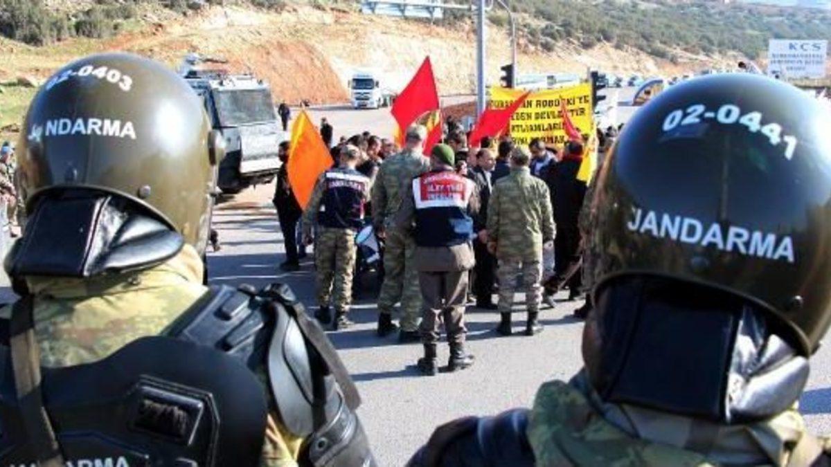 Ellerinde pankartlarla bir süre slogan atan 100 kişilik kalabalık, Adıyaman, Diyarbakır ve Gaziantep'ten de takviye gelen jandarma ve polisler tarafından Gaziantep karayolu Narlı kavşağında durdurularak dönmeleri istendi. Ancak uyarılara rağmen dönmeyen gruplar, karayolunda beklemeye başladı. Bazı kişilerin jandarma barikatı ve TOMA'ların önünde oturma eylemi yaptığı kalabalık, olay yerine Pazarcık Kaymakamı Mehmet Boztepe ve İl Jandarma Komutanı Albay Coşkun Doğan ile bir süre görüştü. Bu sırada sıcaktan baygınlık geçiren araların da güvenlik güçlerinin de bulunduğu bazı kişilere olay yerinde hazır bekletilen ambulansta müdahale edildi. Kalabalığın bekleyişi sürüyor.