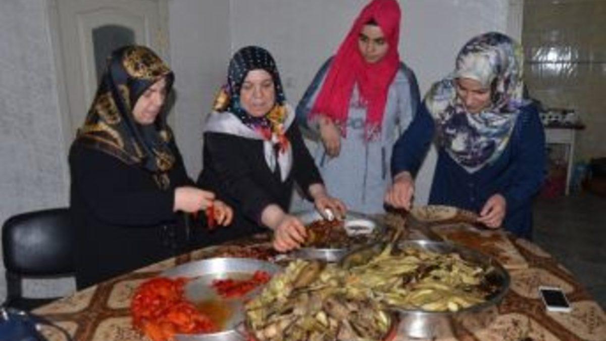 Sonbahar serinliğinin hissedilmesiyle Güneydoğu Anadolu bölgesinde, özellikle kadınların bir araya gelerek ’imece’ usulüyle yaptığı, patlıcan...