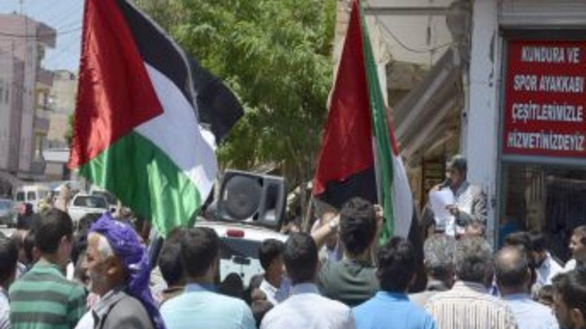 Şanlıurfa'nın Viranşehir ilçesinde Mavi Marmara Gemisi'ne İsrail tarafından yapılan baskının yıl dünümü nedeniyle protesto gösterisi gerçekleştirildi.