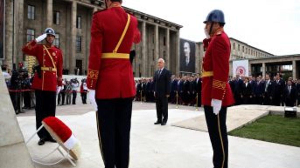 TBMM’nin 24. dönem, 4. yasama yılı açılışı dolayısı ile ilk tören Atatürk Anıtı önünde yapıldı. Meclis Başkanı Çiçek, Atatürk Anıtı'na çelenk koydu. Törene, TBMM Başkanı Cemil Çiçek’in yanı sıra Başbakan Yardımcıları Bekir Bozdağ, Bülent Arınç, Sağlık Bakanı Mehmet Müezzinoğlu, Enerji ve Tabi Kaynaklar Bakanı Taner Yıldız, Gençlik ve Spor Bakanı Suat Kılıç ile çok sayıda milletvekili katıldı. Tören, anıta çelenk konması, saygı duruşu ve İstiklal Marşı’nın okunması ile sona erdi.