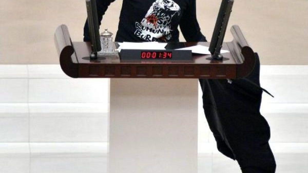 CHP İstanbul Milletvekili Melda Onur, TBMM Genel Kurulu'nda yaptığı konuşmada bir anda üzerindeki ceketi çıkartıp yere fırlattı. Ardından da Beşiktaş'ın ünlü taraftar grubu Çarşı'ya destek vermek için giydiği üzerinde Kartal resmi olan ve 'Asi Ruhumuz Burda' yazılı tişörtü de çıkarttıktan sonra beyaz renkli Ali İsmail Korkmaz'ın fotoğrafının bulunduğu tişörtle kaldı. 'Size üçlü çektireyim' diyen Onur, elini havaya kaldırarak, 'Ali İsmail Korkmaz' ve 'Çarşı vicdandır, yargılanamaz' sloganı attı. Ardından da çeketini ve tişörtü alarak yerine geçti.