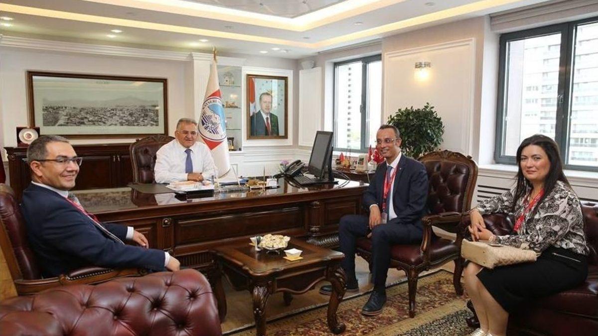 Bahçeşehir Koleji Kampüs Müdürü Mehmet Duran Öznacar ve Lise Müdürü Kasım Uğur ile Kurumsal İletişim Uzmanı Şeniz Doğan, Melikgazi Belediye Başkanı Dr. Memduh Büyükkılıç‘ı makamında ziyaret ederek okullarına yapılan hizmetlerden dolayı teşekkür ettiler.Eğitimin ve eğitimcinin merkeziMelikgazi Belediyesinin eğitime yapmış olduğu yatırımların örnek gösterildiğini, inşa ettikleri okullar da şu anda eğitim verdiğini ve özellikle ilçe sınırları içerisinde yer alan okullarda çevre düzenleme, spor alanı ve toplantı salonları örnek olduğunu ifade eden Bahçeşehir Koleji Kampüs Müdürü Mehmet Duran Öznacar, konu ile ilgili olarak şunları söyledi;“Bahçeşehir Koleji Okulu olarak okul yolumuza ve çevresinde gerçekleştirilen çalışmalardan dolayı ziyaret ederek teşekkür etmek istedik. Eğitime katkı sağlayan herkes geleceğe yatırım yapmaktadır. Her türlü destek ve katkılarından dolayı Melikgazi Belediye Başkanı Dr. Memduh Büyükkılıç’a teşekkür ediyor ve okulumuza davet ederek öğrencilerimiz ile sohbet ederek liderlik, belediyecilik ve kentleşme konusunda seminer vermesini istiyoruz”Eğitime yapılan yatırımlar geleceğin teminatıBelediye olarak ilçe sınırları içerisindeki tüm okulların ihtiyaçlarını karşılamaya çalıştıklarını, özellikle spor alanları, spor aletleri, basketbol sahaları, çevre düzenleme çalışması gibi hizmetleri tereddütsüz yerine getirdiklerini belirten Başkan Dr.Memduh Büyükkılıç “Melikgazi Belediyesi olarak her eğitimin, eğitimcinin ve eğitime destek verenlerin yanında olduk. Destek ve hizmetlerimiz bunların birer kanıtıdır. 12 okul inşa ettik, 2 okulun inşaatı ise devam ediyor, Ambar Anasınıfı eğitim veriyor, inşa ettiğimiz öğretmen odaları, tiyatro ve toplantı salanları ile spor salonları bunlara iyi bir örnektir. Melikgazi Belediyesi olarak şehrin fiziki yapısı yanında eğitim ve sağlık yaşamını önemsiyor ve değer veriyoruz “ dedi.