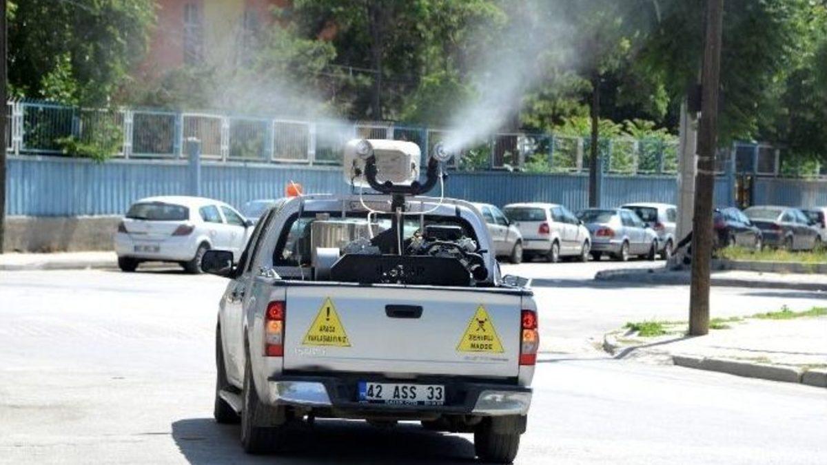 Konya’nın merkez Meram İlçe Belediyesi haşereyle mücadeleyi her mahalleyi en az 10 günde bir ilaçlayarak sürdürüyor.Meram Belediyesi’nin haşereyle mücadelesi düzenli olarak devam ediyor. Ekim ayına kadar sürecek olan ilaçlama çalışmaları, 7-10 günlük aralıklarla tüm mahalle, cadde ve sokaklarda yapılıyor.Konuyla ilgili Meram Belediyesi Veteriner İşleri Müdürlüğü, haşereyle mücadele çalışmalarının Sağlık Bakanlığı’nca yayınlanan, "Biyosidal Ürünlerin Kullanım Usul ve Esasları Hakkındaki Yönetmelik" çerçevesinde sürdürüldüğünü belirttiği açıklamada şu ifadelere yer verildi:“Haşereyle mücadele çalışmalarımız Mayıs ayında larva mücadelesiyle başladı ve daha sonra buna uçkun mücadelesi de eklendi. Uçkun mücadelesi 6 ekiple, 2 vardiya halinde günlük olarak sabah 06.00 ile 10.00 ve akşam 18.00 ile 22.00 saatleri arasında iki vardiya şeklinde yürütülmektedir. Larva ilaçlaması da tek ekiple sürdürülmektedir. İlçemizin tüm mahalle, cadde ve sokaklarında periyodik olarak 7-10 günlük aralıklarla ilaçlama yapılmaktadır. Bu çalışmalara Ekim ayı sonuna kadar devam edilecek ve ortalama 2 bin litre uçkun ilacı, 300 litre de larvasit ilaç tekniğine uygun olarak kullanılacaktır. Haşere ile ilgili şikayetler belediyemizin 444 3 042 numaralı telefona bildirilebilecektir. Halkımızın, özellikle çocukların, hasta ve yaşlıların ilaçların olumsuz etkilerine maruz kalmamaları için ilaçlama araçlarına çok yaklaşmamaları hususunda gerekli itinayı göstermeleri önem arz etmektedir.”