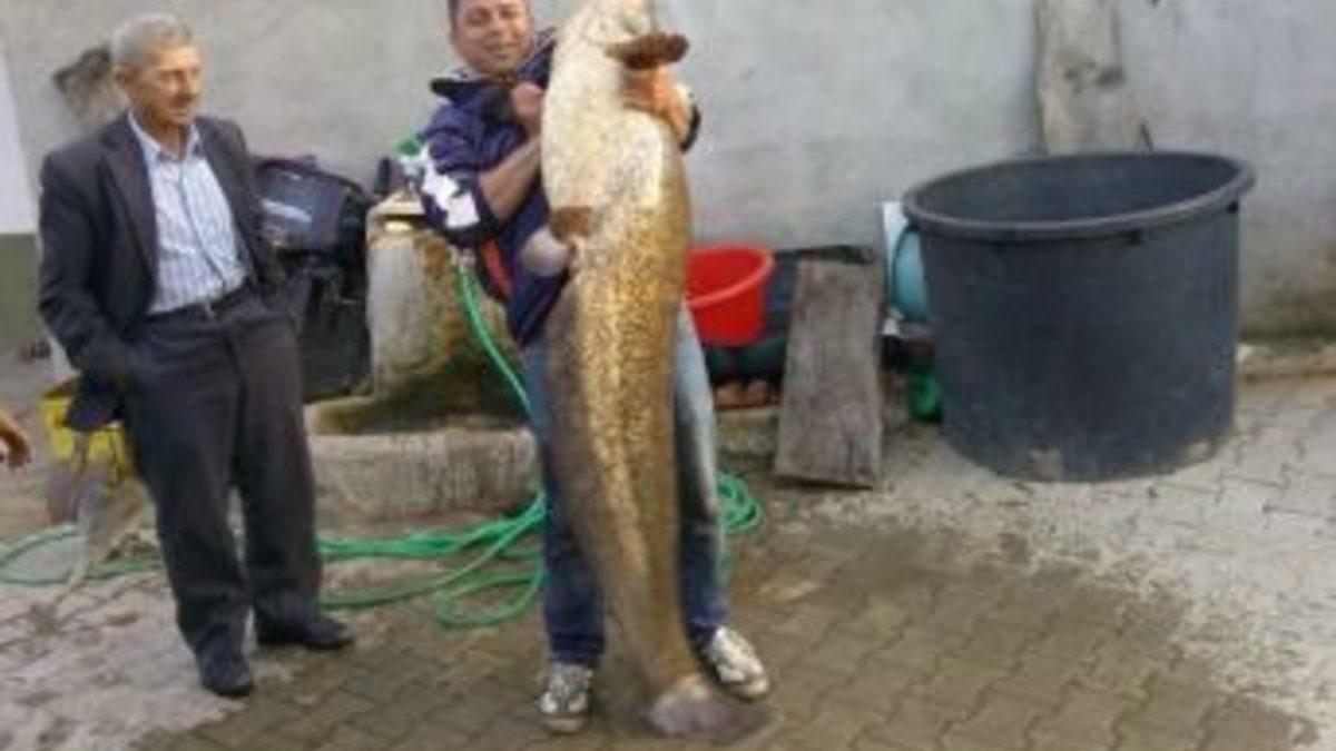 Edirne Meriç Nehri’nde 1.80 metre uzunluğunda 50 kilogram ağırlığında yayın balığı yakalandı.Meriç Nehri'nde akşam attıkları balık ağını sabah toplamaya başlayan balıkçılar, ağlarına takılan dev balığı görünce şaşkına döndü. Arkadaşlarının yardımıyla balığı güçlükle kayığa çeken balıkçılar, balığın kilosunun 50 kilogram, boyunun ise 1.80 metre uzunluğunda olduğunu ifade etti.Balığı köye götürüp fotoğraf çeken Durmuş Altay, "Sazan balığı için attığımız ağı sabah toplamaya başladığımızda dev yayın balığını gördüm. Balığı kayığa çekmek için uğraştım ama çekemedim daha sonra gidip arkadaşlarımdan yardım istedim ve balığı kayığa çıkardık. Balığı köye getirip arkadaşlarla boyunu ve kilosunu ölçtük. 1.80 metre uzunluğunda 50 kilogram ağırlığında olan balığı kilosunu 15 TL’den satacağım" dedi.Balığı gören vatandaşlar da şaşkınlıklarını gizleyemedi.