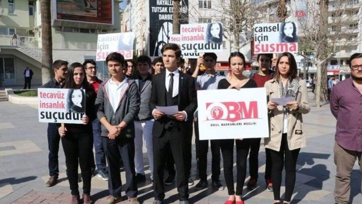 Merkezefendi Okul Başkanları Meclisi Başkanı Furkan Tarhan, son dönemlerde yaşanan kadına karşı şiddet ve tecavüz olaylarının bir daha yaşanmamasını istediklerini söyledi.Merkezefendi Okul Başkanları Meclisi, Delikliçınar Meydanı’nda basın açıklaması yaptı. ‘Cansel için susma’, ‘Tecavüz insanlık suçudur’ gibi pankartlar taşıyan öğrenci meclisi başkanları adına açıklamayı Merkezefendi Okul Başkanları Meclisi Başkanı Furkan Tarhan yaptı. Son zamanlarda kadına yönelik şiddet olaylarının artışından kaygı duyduklarını kaydeden Tarhan, "Mersin’in Tarsus ilçesinde 11 Şubat 2015’te tecavüz edilip vahşi bir şekilde katledilen Özgecan Aslan’ın acıları dinmemişken 20 Şubat 2016 tarihinde aynı olaya kurban giden Cansel Kınalı kardeşimizin can vermesi hepimizi derin bir üzüntü içine soktu. Cansel, henüz gençliğinin baharında, en güzel zamanlarında ve daha 18 yaşındaydı. O, sadece yaşıtları gibi okula gidip ders çalışmak, arkadaşlarıyla vakit geçirmek ve geleceğini kazanmak istiyordu. Her öğrencinin ve aynı zamanda bizlerinde yaptığı gibi tek gayesi okuluna gidip derslere girmekti. Öyle de yapıyordu aslında ancak Kayseri’de okuduğu lisede öğretim görevlisi olan matematik öğretmeni Bayram Ö. tarafından adice, hunharca, vahşice ve bir o kadar acımasızca tacize zorlandı. Yaşıtım olan Cansel kardeşim bu acıya dayanamadı dava açtı. Ancak açtığı davadan da bir sonuç çıkmayınca son çare olarak canına kıymaya karar verdi" dedi.Yaşanan olayı kınadıklarını kaydeden Tarhan, "Bizler burada Merkezefendi Okul Başkanları Meclisi olarak tepkimizi açıkça ortaya koyuyoruz ve bu iğrenç olayı şiddetle ve hiddetle kınıyoruz. Ümit ediyoruz ki, ülkemizde bu acılar tekrar yaşanmaz. Temenni ediyoruz ki bir genç kız kardeşimiz, bir kadın daha böylesine iğrenç bir olaya kurban gitmez. Sözlerime son vermeden önce yaklaşık bir yıl önce aynı vahim olayda hayatını kaybeden Özgecan Aslan’ı da buradan tekrar yad etmek istiyorum. Cansel Kınalı kardeşimin de acılı ailesine ve arkadaşlarına baş sağlığı, merhuma Allah’tan rahmet diliyorum ve buradan bir kez daha halkımıza seslenmek istiyorum. Önce kızlara nasıl oturup kalkılacağını ve nasıl davranılacağını değil, erkeklere; edepli olmayı ve onları da bir kadının doğurduğunu öğretin" diye konuştu.
