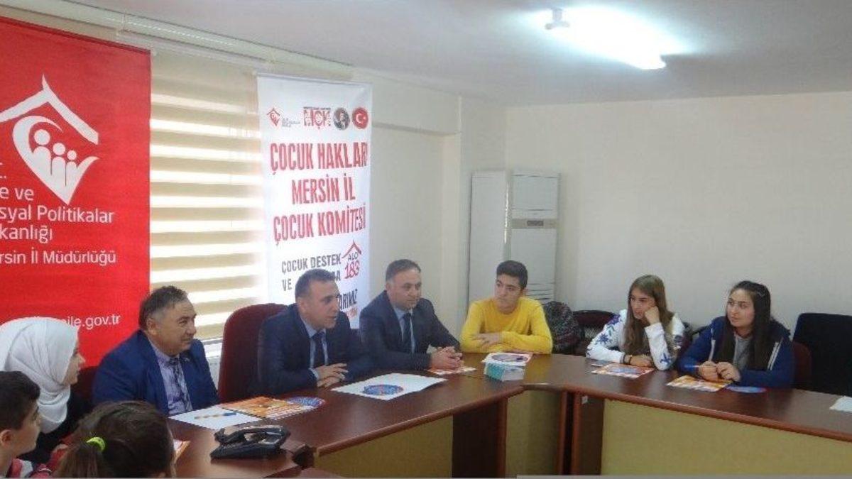 Çocuk Hakları İl Çocuk Komitesi, Aile ve Sosyal Politikalar Mersin İl Müdürü Veysel Topkaya başkanlığında toplandı.İl Müdür Yardımcısı Bahadır Sarı’nın da katıldığı toplantıda konuşan Topkaya, Mersin’de çocuk hakları alanında İl Çocuk Komitesinin aktif şekilde çalıştığını belirterek, çocuk katılımının artırılması için her okulda çocuk hakları faaliyeti yapılması ve yapılan faaliyetlerin raporlaşması çalışmalarına hız verileceğini söyledi. Özellikle çocukların aldıkları kararların ilgili kurumlarca gereğinin yapılıp yapılmadığını takip edeceklerini kaydeden Topkaya, "Çocuğun katılımı ve üstün yararı bizim için her şeyin üstündedir" dedi.Çocuk Hakları İl Koordinatörü Mustafa Sarı ise Çocuk Komitesinde alınan kararları şöyle açıkladı; "Toroslar Anıttepe’de bulunan Çocuk Hakları Hatıra Ormanının koruma altına alınması için Toroslar Belediyesi başta olmak üzere ilgili kurumlara daha önce gönderilen kararların yerine getirilmesinin takip edilmesi. Şehrin ana kavşaklarında trafik denetimlerinin artırılması, özellikle ışıklı kavşaklarda ışıkların orantılı olarak yeniden düzenlenmesi. Okullarda dış kapı nöbetlerinin çocuklara tutturulmaması, özel ve resmi okullarda okul kantin ve yemekhanelerin denetiminin yapılması ile ilgili İl Tarım Müdürlüğüne gönderilen kararların geri dönüşünün yapılmamasının nedenlerinin araştırılması. Okul kantinleri ve yemekhanelerinin denetimine hız verilmesi. Çocuk Hakları Çocuk Komitesi faaliyetlerinin ilçelerde de yaygınlaştırılması için gerekli çalışmaların başlatılması."