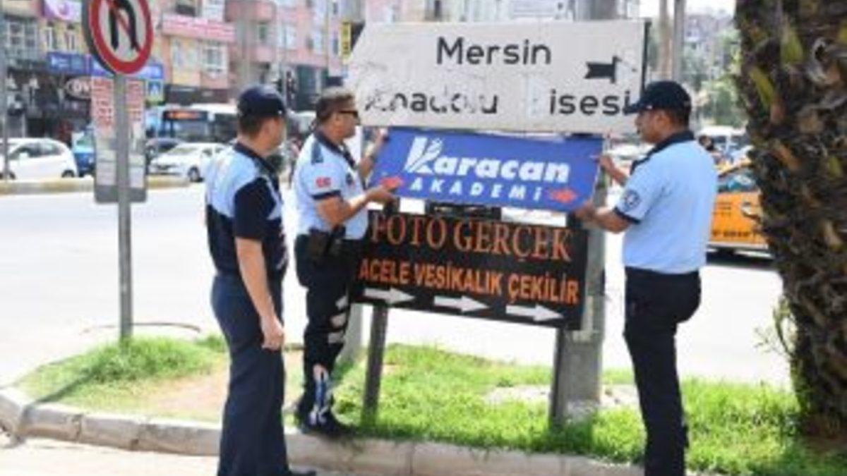 Mersin Büyükşehir Belediyesi zabıta ekipleri, izinsiz yerleştirilen ve görsel kirlilik oluşturan tabelaların kaldırılması için çalışma başlattı.Mersin genelinde ana caddelerde, yol kenarlarında yer alan irili ufaklı reklam tabelaları, görüntü kirliliğine sebebiyet vermesi nedeniyle Mersin Büyükşehir Belediyesi zabıta ekiplerince düzenlenen çalışma ile kaldırıldı. Ana yollarda ve ara caddelerde bulunan ağaç, aydınlatma direği, uyarıcı trafik levhaları gibi yerlere izinsiz olarak asılan ve görüntü estetiği açısından rahatsız edici olan tabela, levha ve afişleri asan iş yerleri yetkilileri uyarılarak tabela ve levhaların kaldırılması sağlandı. İşyeri sahibine ulaşılamayan levha ve tabelalar ise zabıta ekipleri tarafından, ilgili yasa ve yönetmelik uyarınca bulundukları yerlerden kaldırıldı.Büyükşehir Belediyesi zabıta ekipleri, kent genelinde 266 tabelayı kaldırarak, görüntü kirliliğinin önüne geçmiş oldu. Yetkililer, devam eden günlerde kent estetiğini bozan tabela ve levhaları izinsiz olarak asanlar hakkında gerekli yasal işlemin yapılacağını bildirdi. Tabelaların asılmaması konusunda işyeri sahipleri ve vatandaşları uyaran zabıta ekipleri, çalışmaların devam edeceğini belirtti.