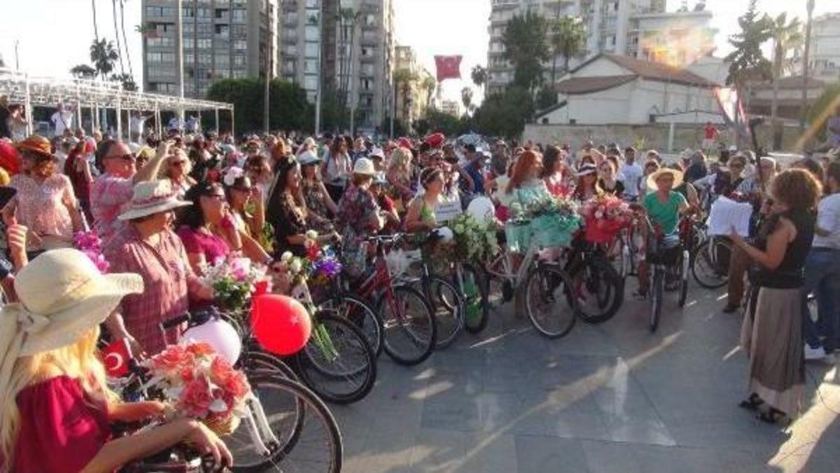 Türkiye geneli 50 ilde caddelerin sadece motorlu araçlara ve erkeklere ait olmadığını göstermek isteyen kadınlar, 'Süslü Kadınlar Bisiklet Turu' etkinliğinde pedal çevirdi. Her yıl daha fazla kişiye ulaşan etkinlik Mersin'de 2'inci kez Ebru Petek Budur önderliğinde gerçekleştirildi. Cumhuriyet Meydanı'nda toplanan 200 kişilik grup, buradan Marina'ya kadar bisiklet ile tur attı. Kadınların, yanlarında çocukları ve evcil hayvanlarıyla pedal çevirmesi renkli görüntülere sahne oldu. Bisikletin kentin bir parçası ve doğa dostu olduğunu belirten Bisiklet Turu Mersin Sorumlusu Ebru Petek Budur, "Yoğun kent trafiğine çözüm olabilir ve bir ulaşım aracı olarak algılanmalıdır. Eğer uygun bisiklet politikaları ve yolları olursa, işe veya ulaşacağımız yere rahatlıkla bisikletle gidebiliriz. Bizde dünyanın birçok yerindeki hemcinslerimiz gibi günlük kıyafetlerimizle bisiklete binerek ulaşımımızı sağlayabiliriz. Buna dikkat çekebilmek amacıyla süslendik ve bisikletimizle yollara çıktık. Yollarda bisikletlilere sevgi istiyoruz. Motorlu araçların hiçe saydığı birçok insanı bisiklet kazalarında kaybettik. Kendilerini rahmet ve saygıyla anıyoruz. Yollarda bisikletlerimizle çok ve görünür olursak, motorlu araç sürücülerinin farkındalığının artacağını düşünüyoruz" diye konuştu.