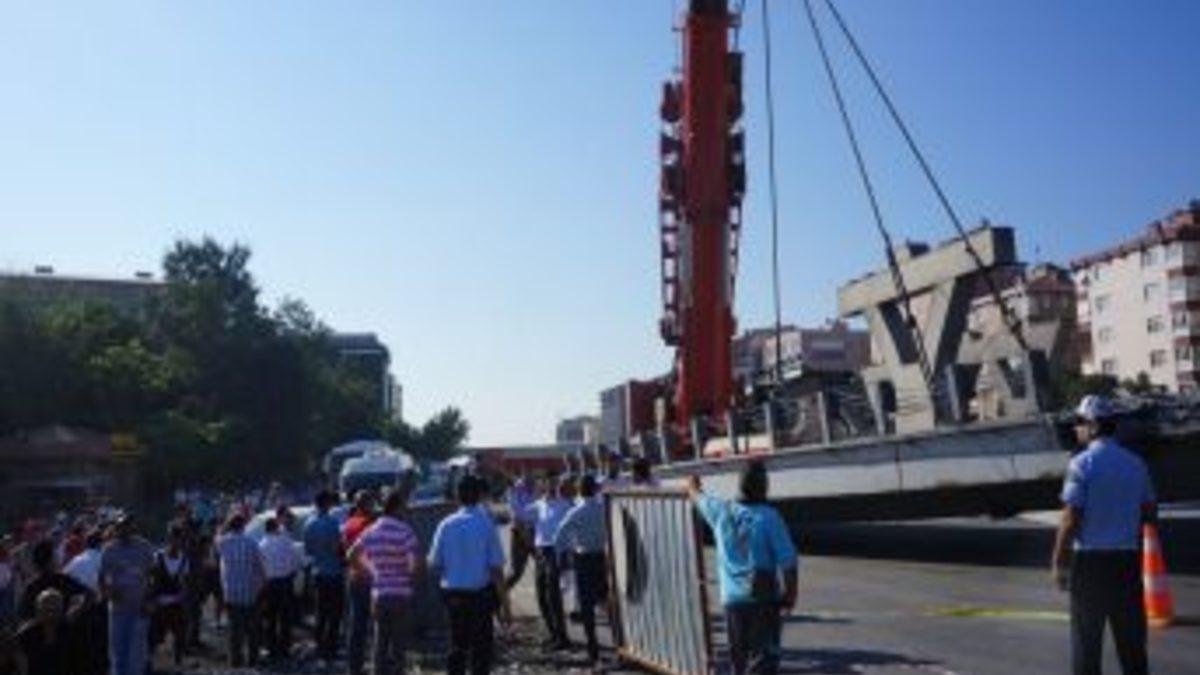 Söküm çalışması yapılan köprünün yukarıdaki bölümü, vinç yardımıyla indirildi. İndirilen blok, olay yerinden götürüldü. Çöken parçanın kaldırılması içinse çalışmalar devam ediyor.