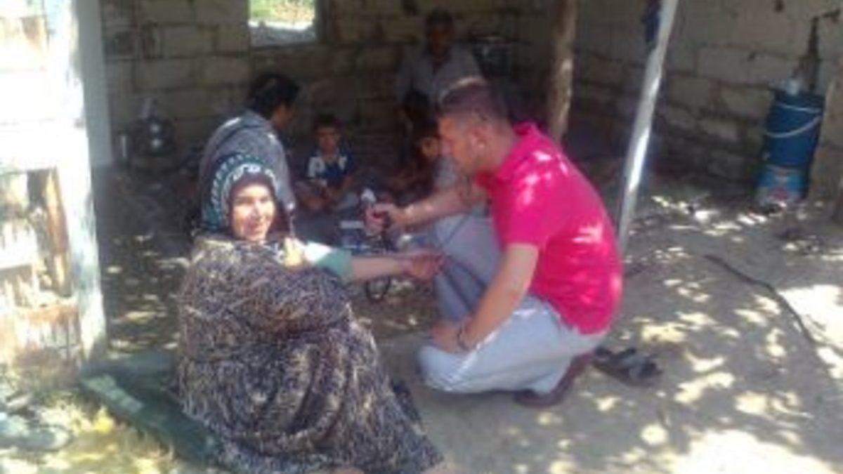 Doğu ve Güneydoğu Anadolu Bölgesi'ndeki kentlerden Saruhanlı'ya bağlı Büyükbelen Beldesi'ne mevsimlik tarım arazilerinde çalışmak için gelen geçici tarım işçileri, genel sağlık taramasından geçirildi.