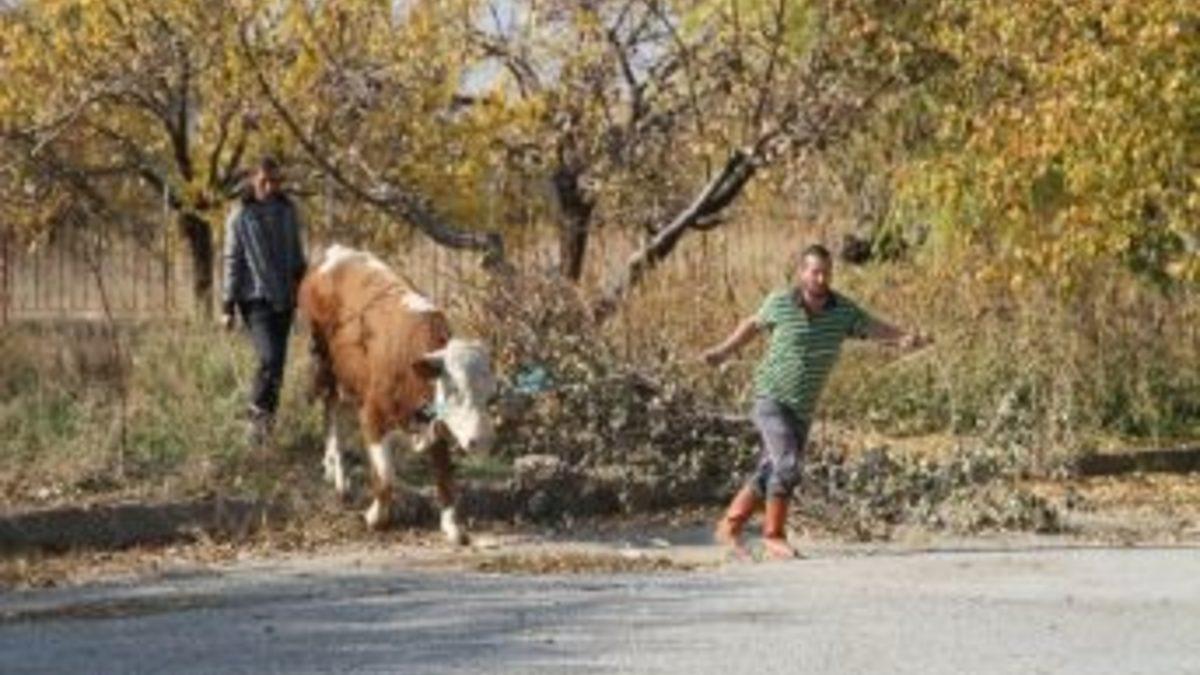 Erzincan’da mezbahaya götürülen boğa, kamyondan indirildiği sırada kaçınca kasap ve belediye görevlilerine zor anlar yaşattı. Yaklaşık bir saat süren mücadelenin ardından boğa, iğne vurularak sakinleştirildi.Erdal Şahin’e ait boğa kesilmek üzere Erzincan Belediyesi’ne ait mezbahaneye götürüldü. Burada kamyondan indirildiği sırada sahibinin elinden kaçan boğa, bahçede kasapları peşinden koşturdu. Yaklaşık 1 saat boyunca yakalanamayan boğa, Erzincan Belediyesi'ne bağlı ekipler tarafından uyuşturucu iğneyle birçok kez atış yapılmasına rağmen kaçmaya devam etti. Boğanın saldırılarından kaçmak isteyen kasaplar, ağaçlara tırmanmak zorunda kaldı. Mezbaha çalışanları hırçın boğayı yakalamak için uzun süre çaba sarf etti ancak başarılı olamadı. Uzun süren mücadelenin ardından boğa vurulan iğnelerinde etkisiyle sakinleşmeyince iple yakalanarak mezbahaya götürüldü.Tüm uğraşlarına rağmen, boğa kesilmekten kurtulamadı.