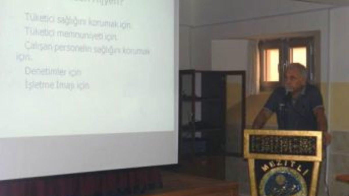 Dr. Abdurrezzak Ata ise katılımcılar portör muayenesi hakkında bilgiler verdi. Ata, çalışanların portör taramalarını ihmal etmemesi gerektiğini belirterek, “Hem çalışanın hem de tüketicinin sağlığı için bunlar yapılmalıdır. Bu yapılan taramaların belli aralıkları vardır. Bu aralıklar içinde gereken testler yapılıp personelin adına hazırlanmış dosyalara konulması gerekmektedir. Aksi takdirde yapılan incelemelerde bu testlerde eksiklikler çıkarsa işletme hakkında gerekli işlemler başlatılacaktır. Yapılan portör taramaları sonucu olumsuzluklar tespit edilmesi durumunda yapılacak önlemler ise çalışanı geçici veya sınırsız olarak işletmeden uzaklaştırmak gerekmektedir” diye konuştu.